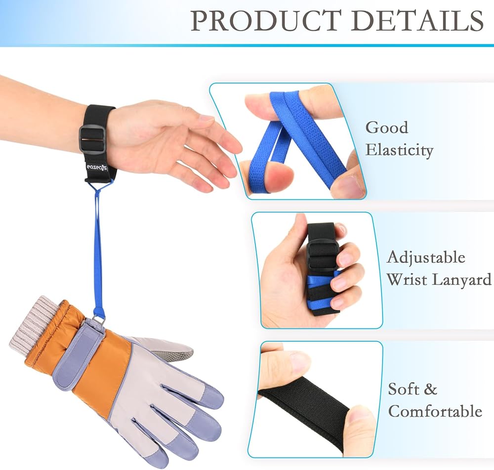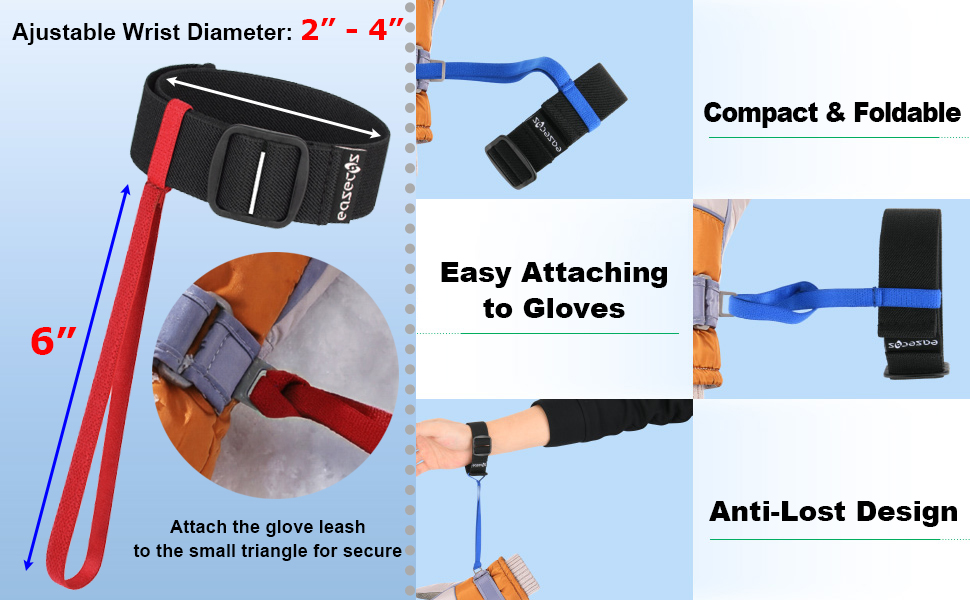 ANTI-LOST DESIGN: never lose your gloves again with these ski glove leashes featuring a safety strap that keeps your gloves hanging secure when not in use. Keeping them safe and easily accessible on ski lifts or mountain trails.