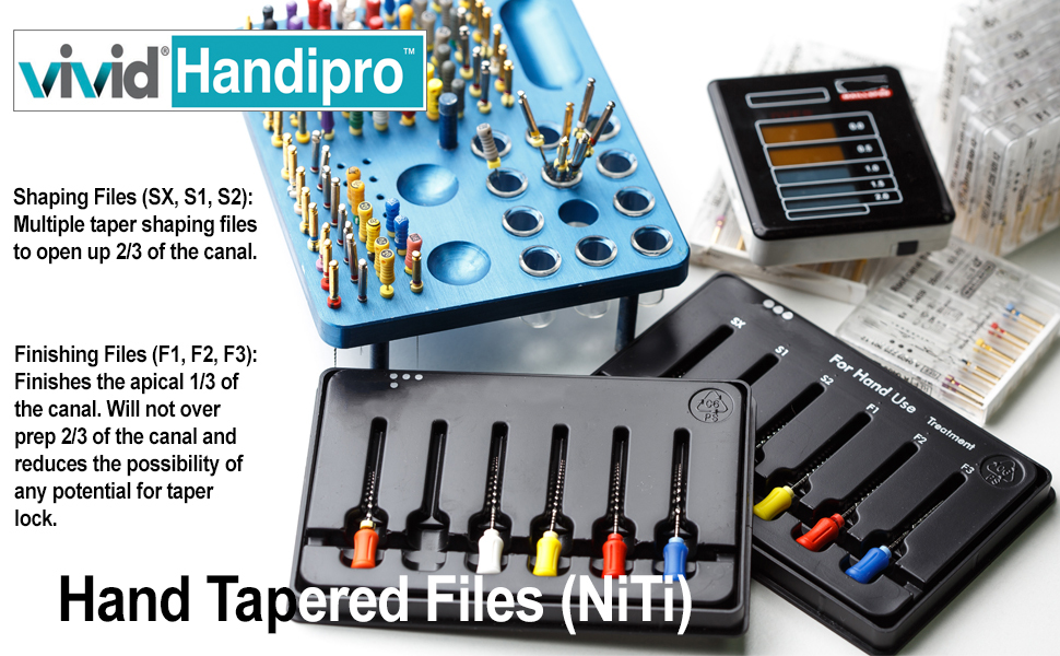 - Multi Taper NiTi Hand Files for superior canal tracking and debris removal.
