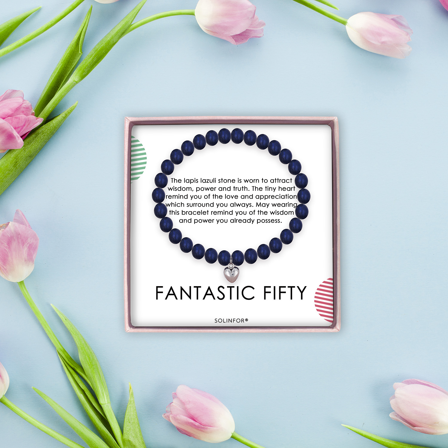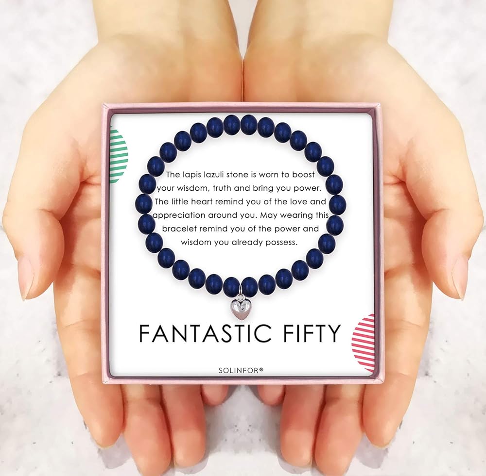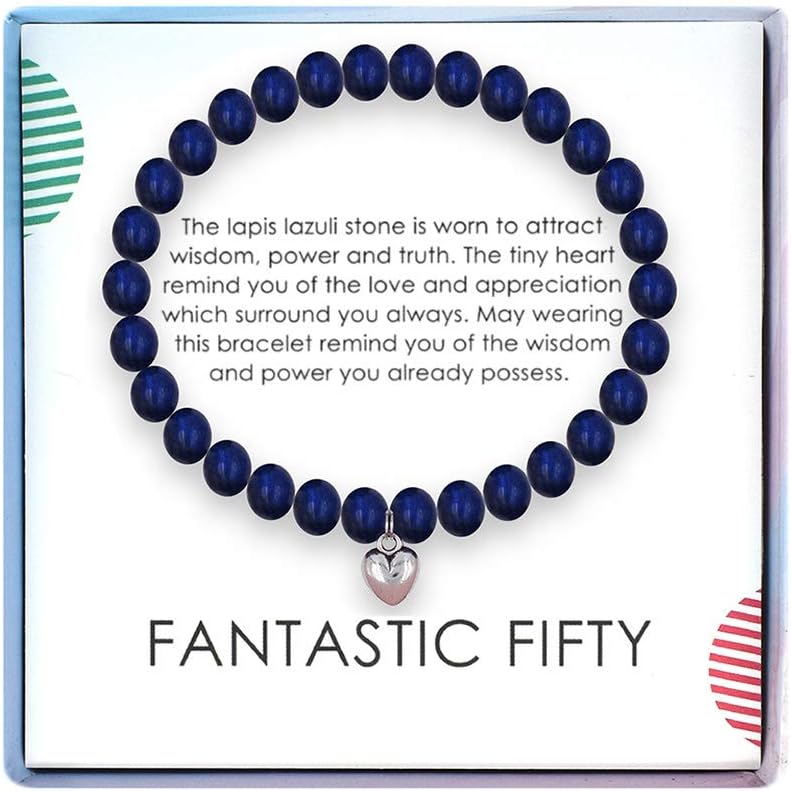 ✔ MEANING - Through the ages, the lapis lazuli stone is worn to attract wisdom, power and truth. Commemorate her milestone 50th birthday with this lapis lazuli bracelet. Wear this bracelet as a reminder that the wisdom and power she already possess. And the tiny heart symbolizes the love you have with her, and remind her of the love and appreciation which surround her always.