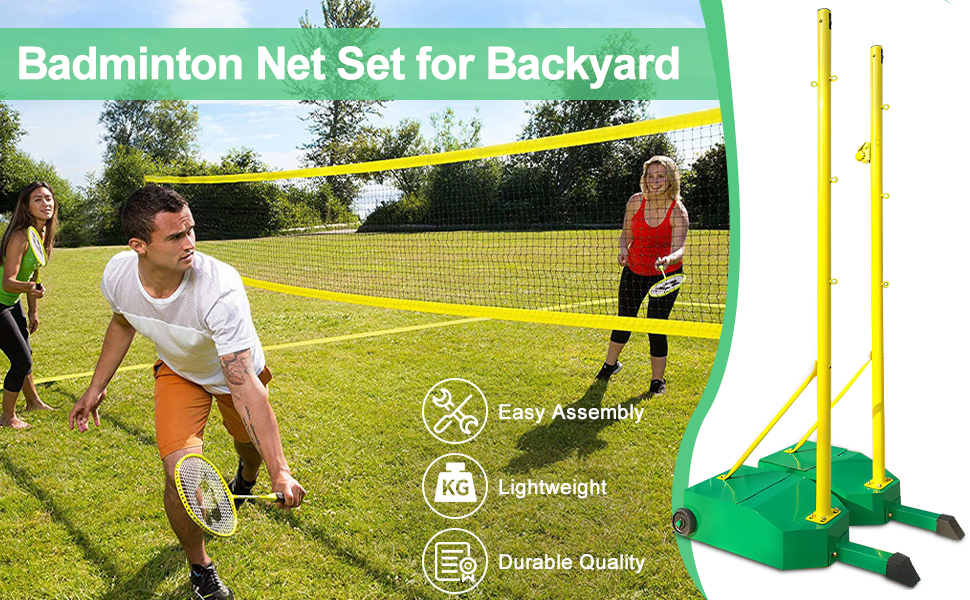☀ Outdoor Badminton Poles: The main body of the badminton net set is made of thick steel plate and tear-resistant, non-sagging PP material net. Our volleyball poles can with stand the abuse of the hardest hits season after season.The badminton net is equipped with supremely high quality and sturdy construction