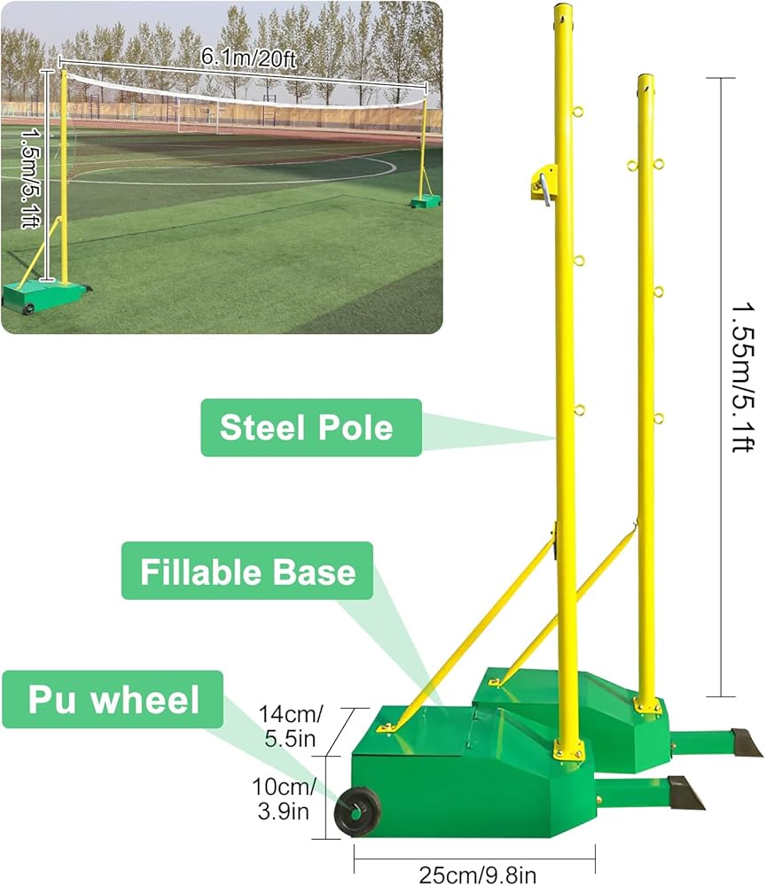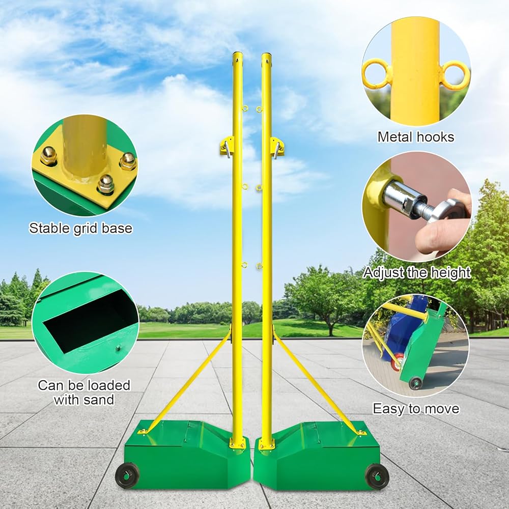 ☀Heavy Duty badminton Poles with wheels: You have the option to maximize the stability of badminton post by simply filling the heavy box with sand, steel balls or any material of your choice