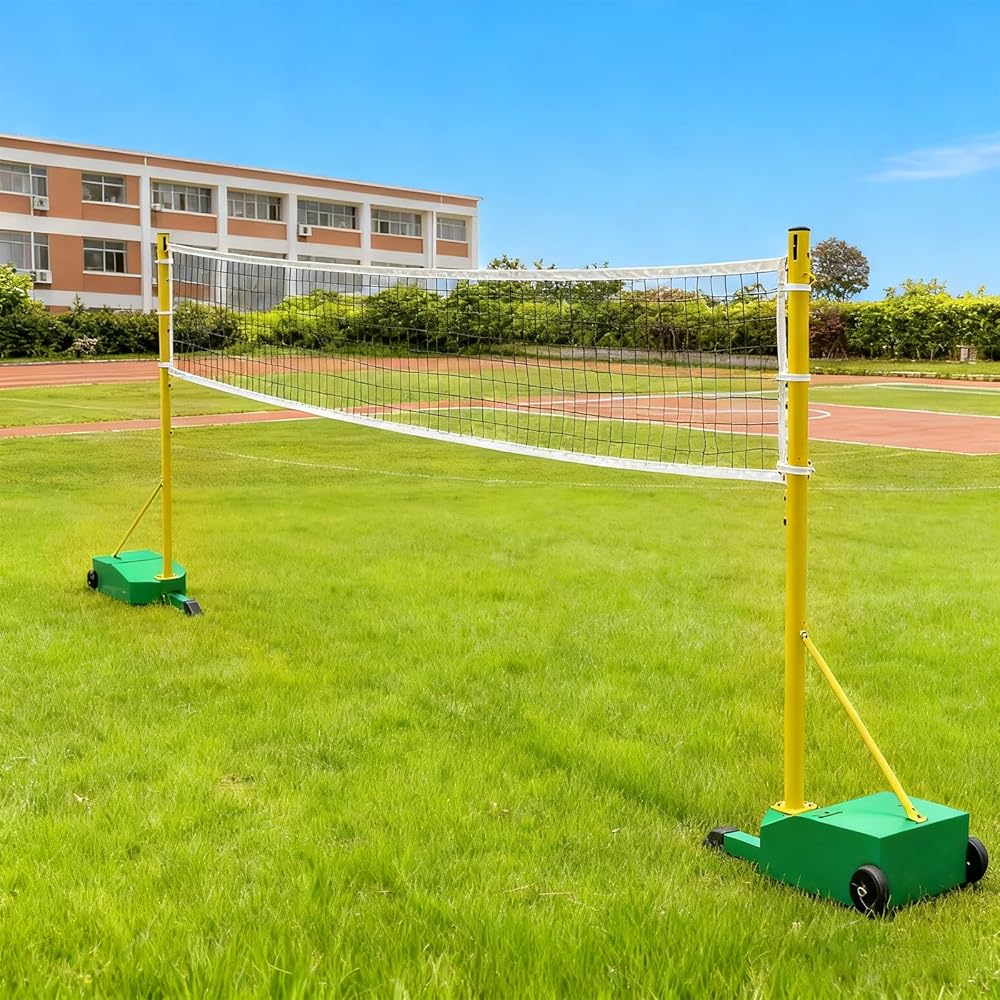 ☀ Movable Badminton Net Frame Pole: Our badminton poles can be used indoors or outdoors with no worries. With the wheels on the bottom, the volleyball net for backyard is easy to move to the desired position for playing.No matter if it's for the garden, lawn, beach, playground or any flat area,this badminton net set brings you hours of fun