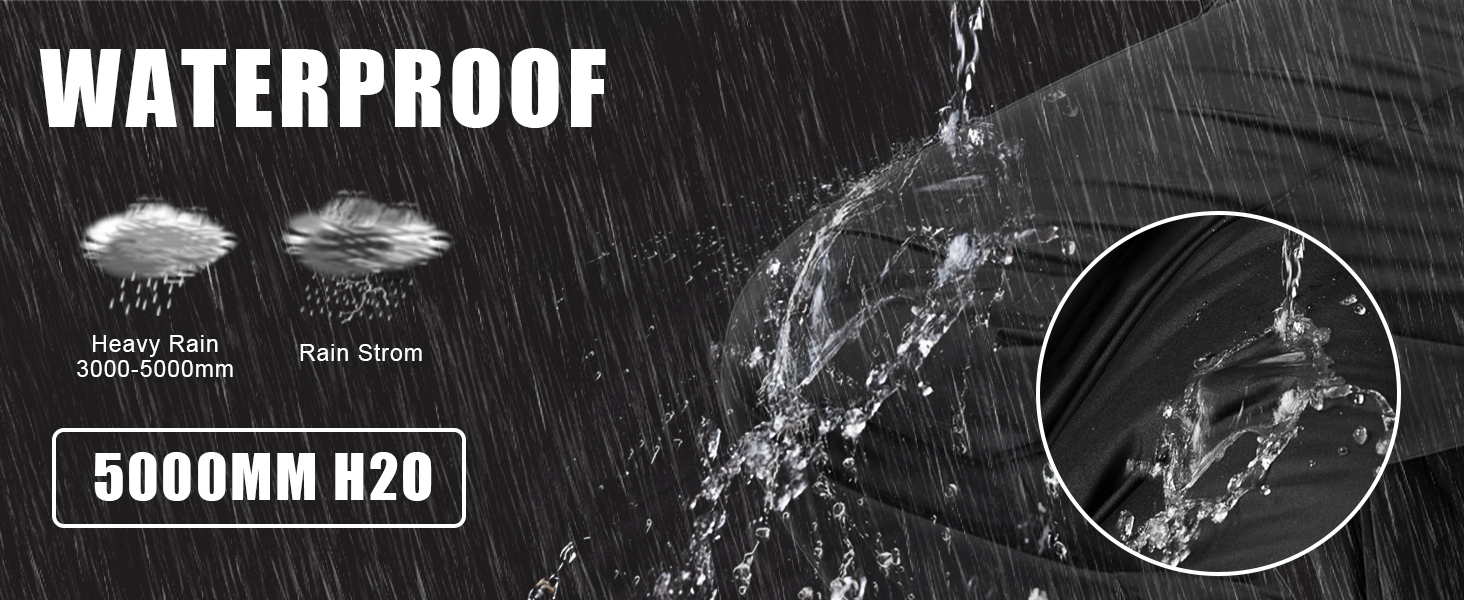 WATERPROOF: Waterproof grade: 5000mm.Premium abrasion-resistant fabric is made of advanced waterproof coated nylon with seams sealed to Prevent leaks. Excellent waterproof and windproof properties of Ourcan men's rain pants can keep you dry in wet weather