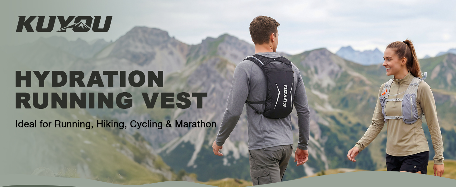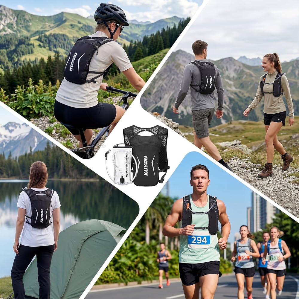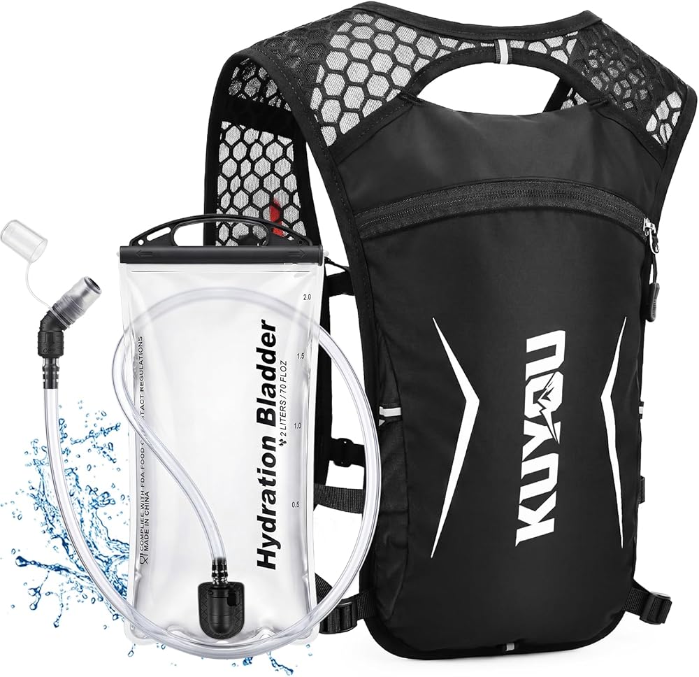 KUYOU Running Vest for Women Men, Lightweight Hydration Backpack with 2L Water Bladder, Adjustable Chest Straps Water Backpack for Trail Running Hiking Cycling Marathon