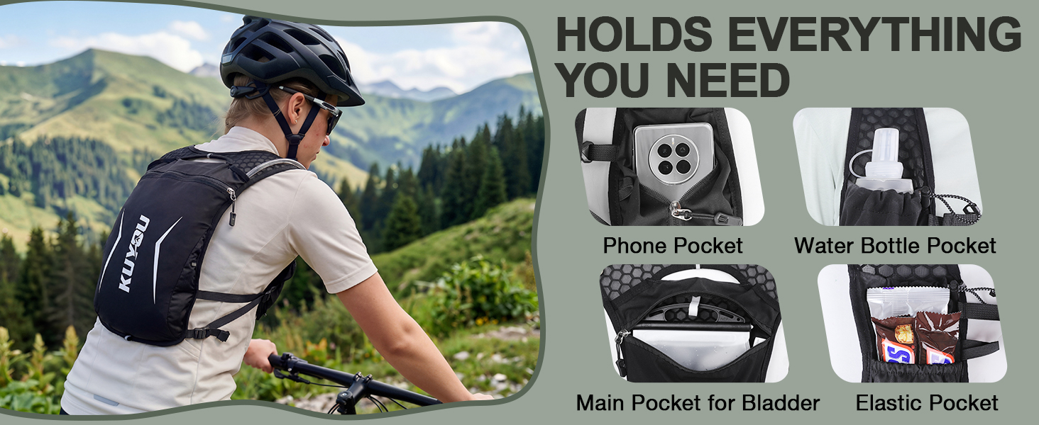 【VERSATILE FOR MULTI-SPORTS】- Lightweight and body-hugging, this unisex water bladder backpack is ideal for trail running, hiking, cycling, marathons, jogging and various outdoor activities, ensuring all-day comfort.