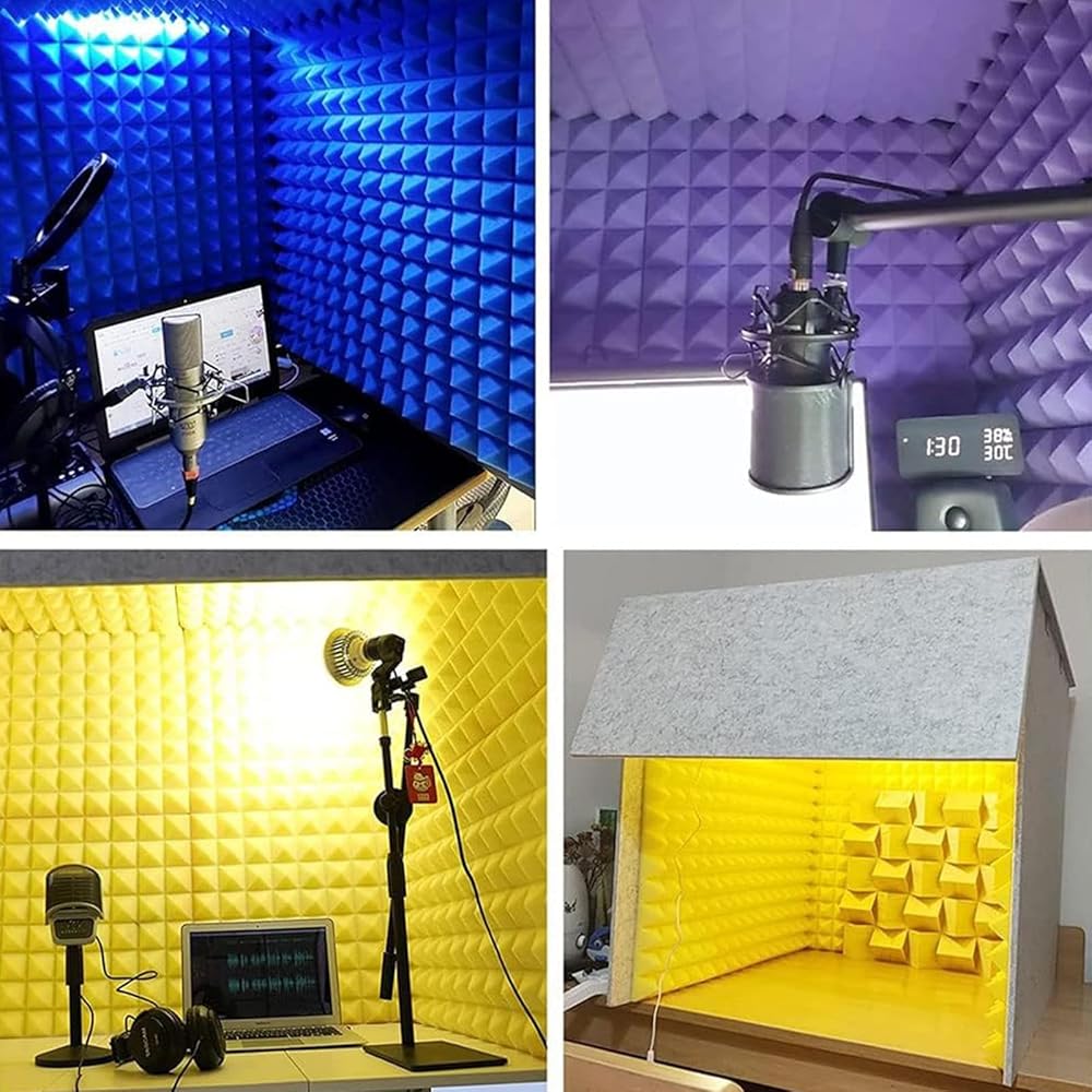 The Desktop microphone Soundproof Cover is lightweight and portable to easily transport from the studio countertop to the recording booth. Designed box-style for maximum absorption. Perfect for studio recording, podcast, vocal, singing, etc.