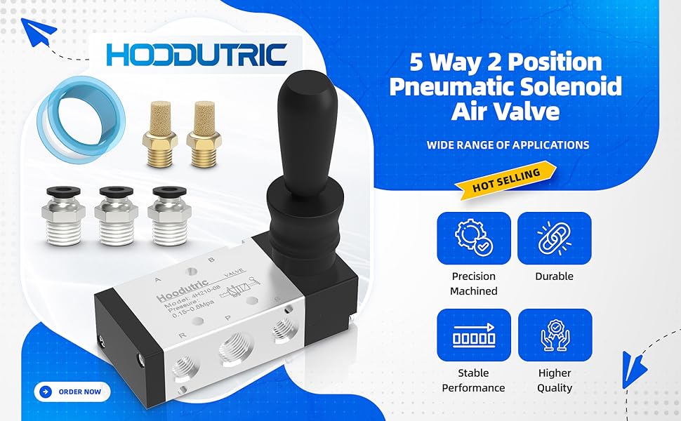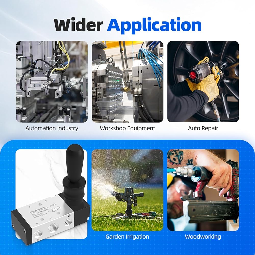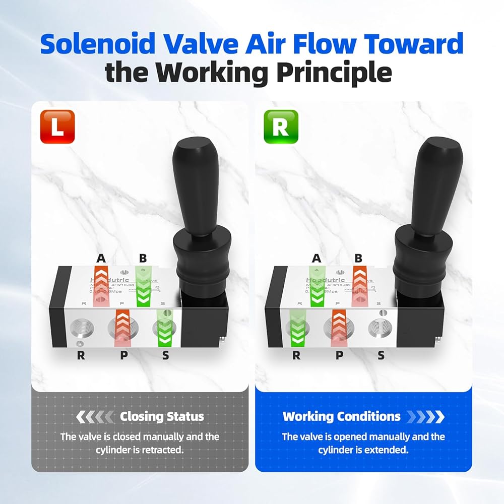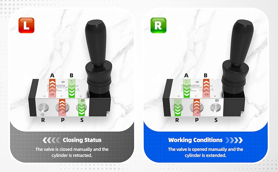 Functionality: 5Way 2Position hand-pull air valve,by manually pulling the handle, it controls the cylinder's extension and retraction, switching between air intake and exhaust to achieve reciprocating cylinder motion