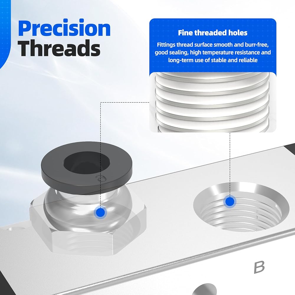 Standard Dimensions: Inlet and outlet ports are 1/4"NPT, and the exhaust port is 1/8"NPT. It comes with pneumatic fittings that can directly connect to 1/4 or 6mm air pipes for quick and easy installation. Operating pressure range: 25Psi~116Psi; Operating temperature: 0-60°C (32-140°F)