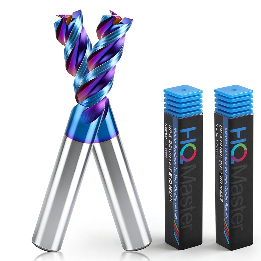 HQMaster Carbide Square End Mill with Nano Blue Coating, 1/2“ Shank 3 Flute End Mill, HRC 60 CNC Milling Bits Set for Aluminum, Copper, Magnesium Alloys & Composite Materials, 2-Pack