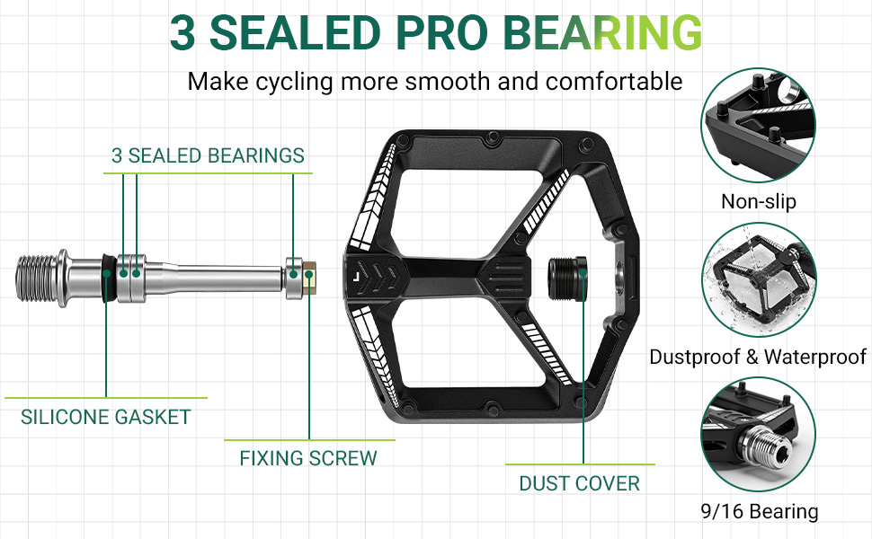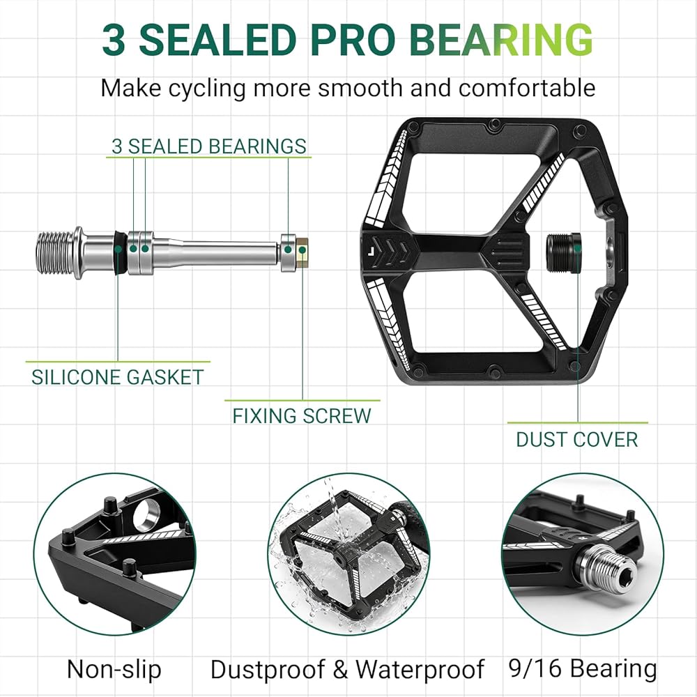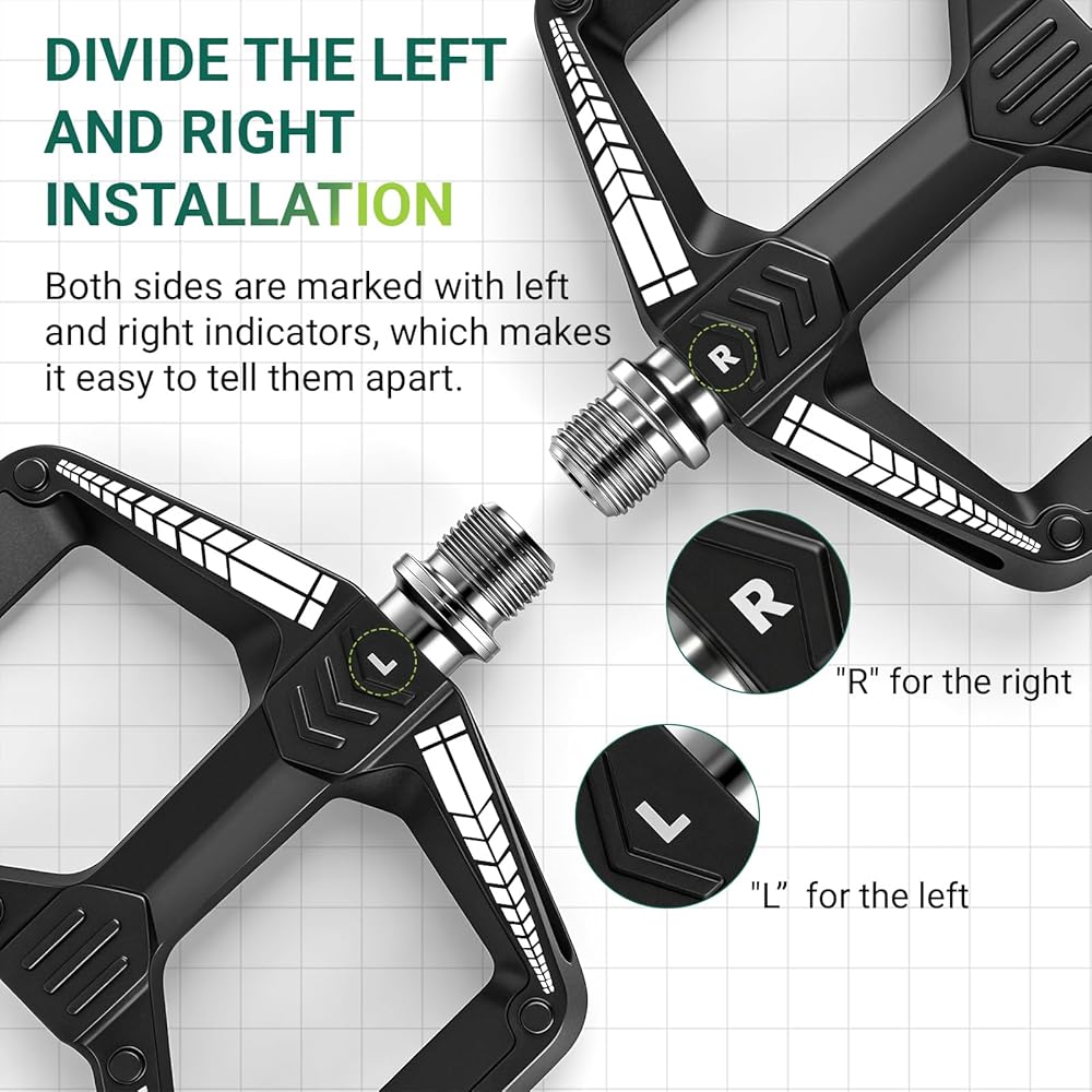 Easy to Install: L for left; R for right. Sealed bearing bicycle pedals protect spindles from water and dust, which can cause noise and other problems, allowing you to enjoy cycling in the rain or climbing.