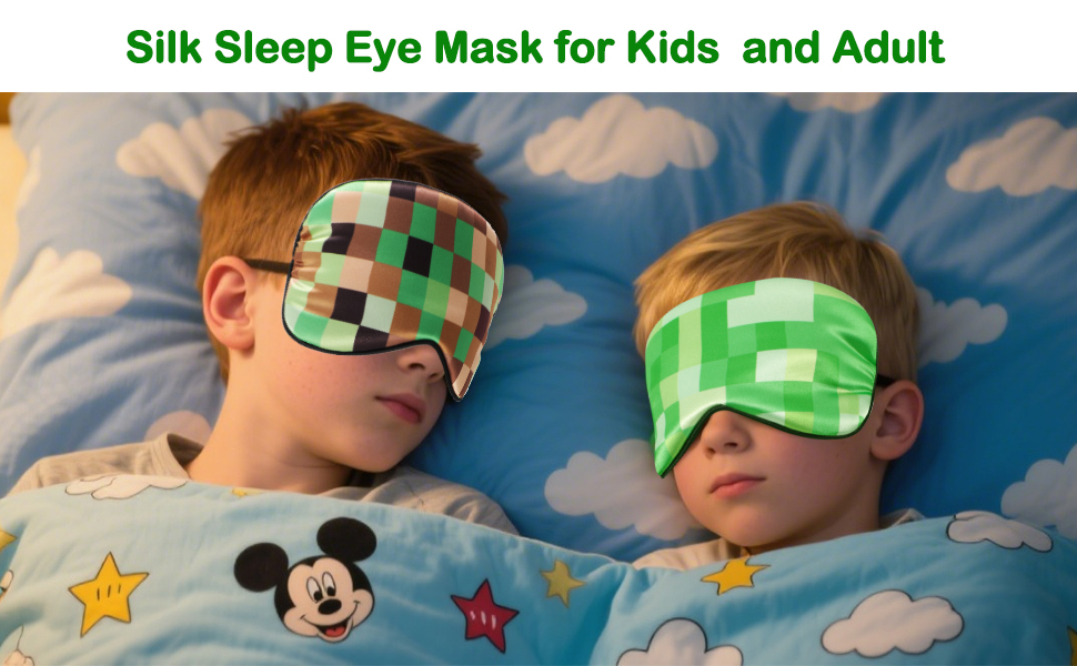 2 Pcs Sleep Mask for Kids Boys, Silk Eye Covers for Sleeping, Adjustable Strap & Light Blocking Design, Teen Children's Bedtime Blindfold for Travel and Home Use with Gift Box (My World)