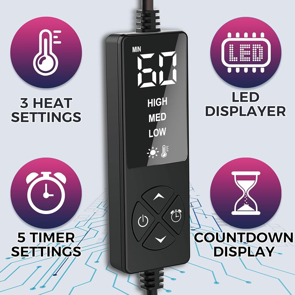Fast, Continuous Heat Therapy: Delivers consistent warmth within minutes—no need to reheat like traditional microwavable masks. Includes an LED controller with customizable temperature and timer settings for personalized comfort.