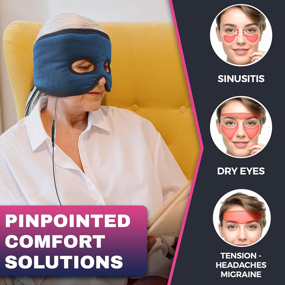 Full-Face Coverage with Ergonomic Design: Features oversized heating elements that fully cover the forehead, sinuses, and cheeks to relieve tension headaches, sinusitis, migraines, and puffiness. Its upgraded single-window design offers clear visibility, while a flexible nose bridge ensures comfort and targeted relief.