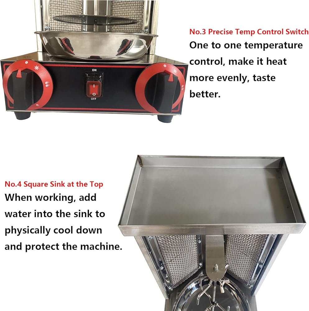 Dual Control Heating System: This shawarma grill machine is equipped with two independent temperature switches for precise and individual temperature control of each heating element. This dual control system ensures both energy efficiency and consistent, delicious results
