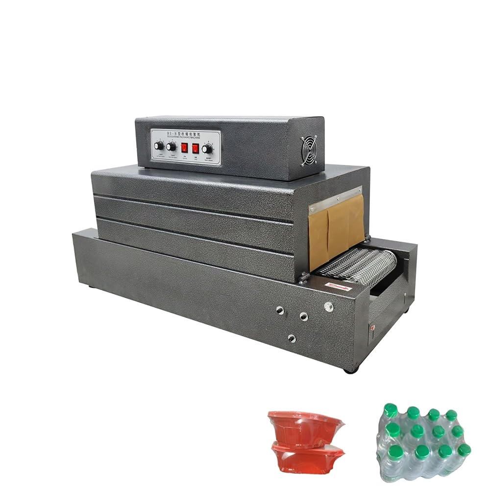 Designed with user safety and performance in mind, the unit includes an overload protector, independent upper and lower zone temperature controls, and active heat dissipation via exhaust vents and an internal cooling fan. Ideal for bundling multi-piece items or tray packaging, this shrink tunnel packaging machine ensures sealed, moisture-resistant, and impact-protected results.