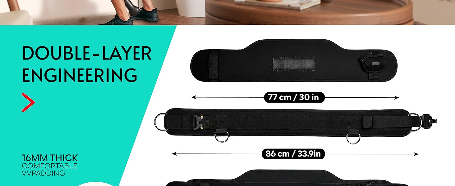 Tailored for Smart Home Gym - Engineered specifically for indoor workout lover, this belt is the ultimate companion for heavy squats and hip thrusts; reinforced attachment points and adapters are included for seamless integration