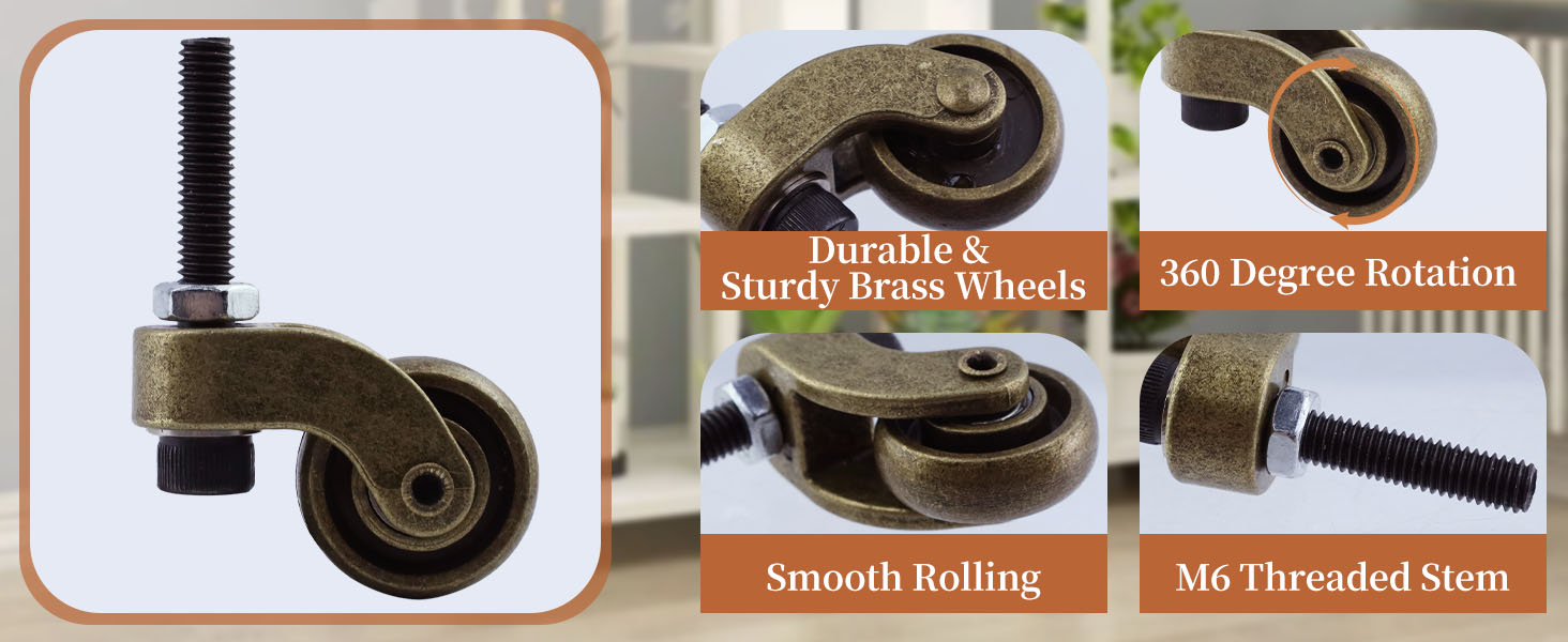 Easy to Install: Includes 4 solid brass casters with screw installation for a secure and stable fit. Quick and convenient to install, they can be set up in no time