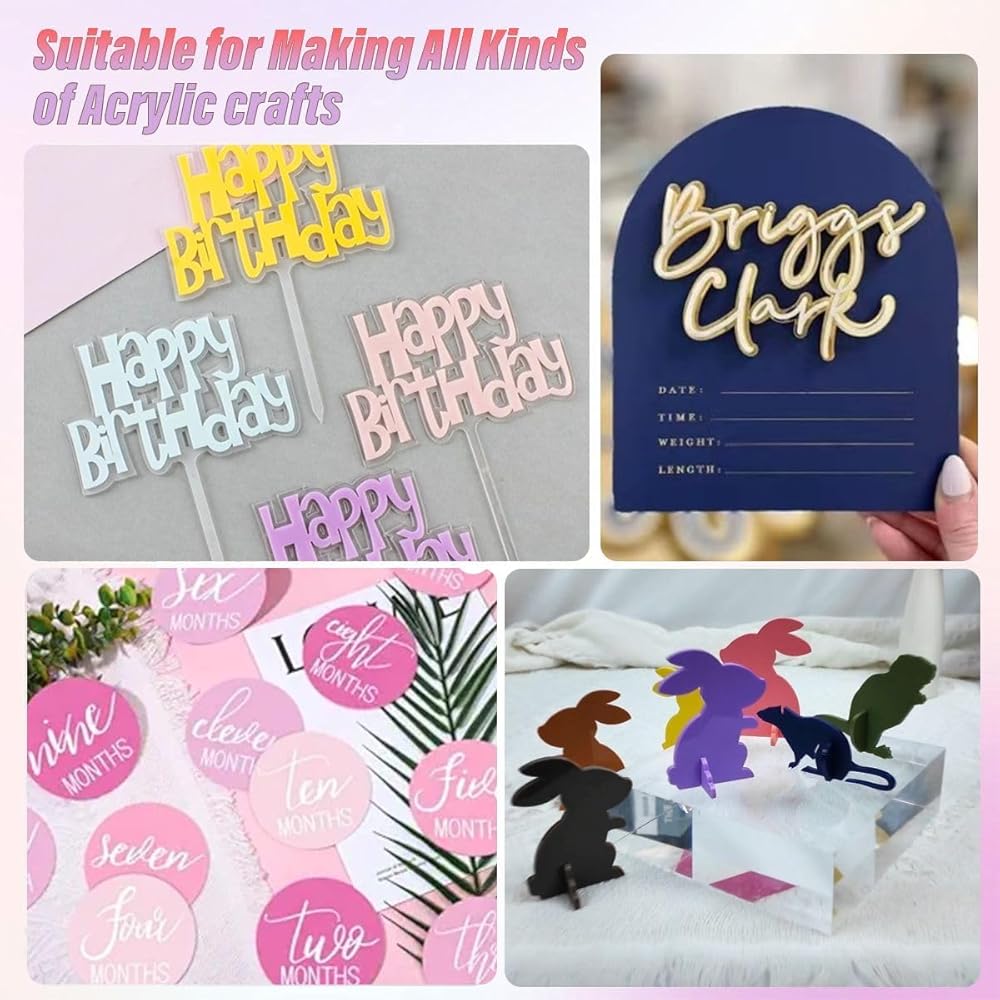 • Multipurpose Use: True Pastel acrylic laser engraving blanks are ideal for DIY Projects, New Year decorations, or any other DIY sheet; Plexiglas sheet for crafts can be cutting for laser engraved acrylic sign, picture frame, bathroom wall decor, kitchen wall decor, bedroom wall décor
