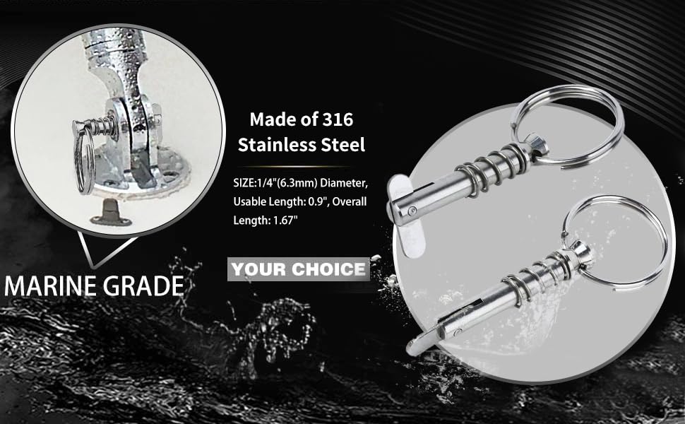 VERSATILE USE: Quick Release Pin for bimini top, boat tops and support poles, deck hinge etc, Can be used for stainless steel pipe clip, ship outfitting, shipbuilding etc