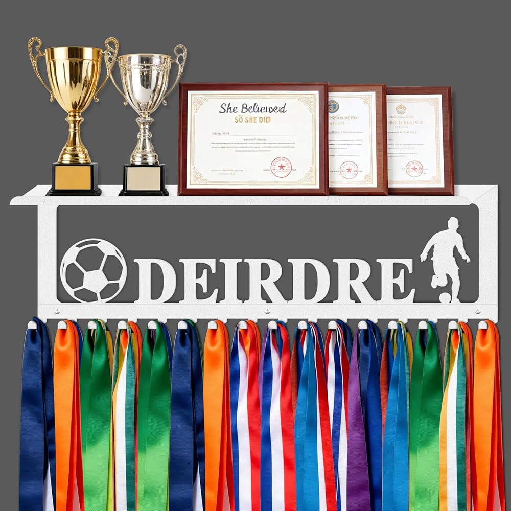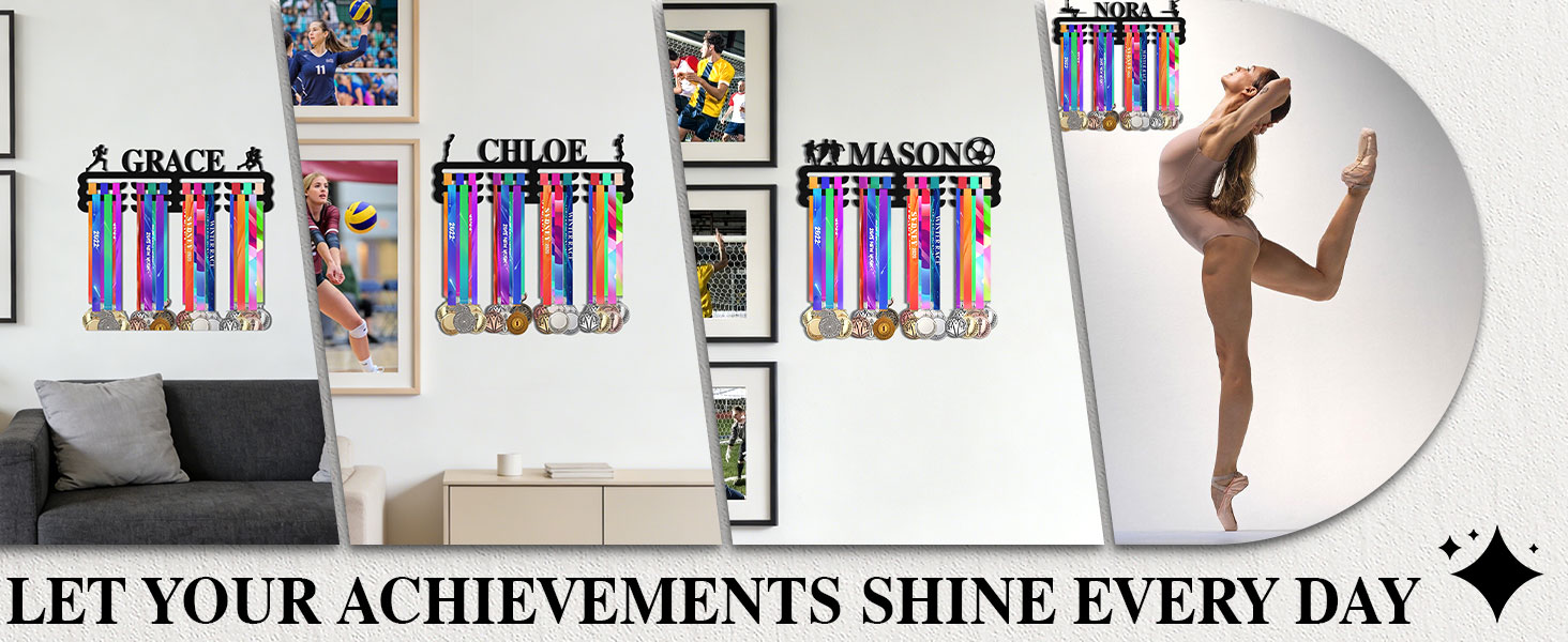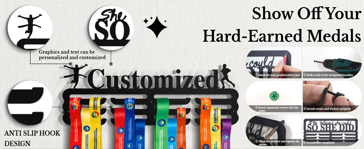 Display your achievements with a custom medal hanger designed to turn your medals into a meaningful wall display. Instead of keeping medals tucked away in drawers, showcase them proudly in your home, gym, or personal space. This wall mounted medal display rack features a secure hanging design that helps keep medals neatly organized and in place. With custom text available, each hanger can be personalized with your name, motivation, or special message to reflect your journey and accomplishments. Designed for everyday use, the medal hanger includes mounting hardware for easy and secure installation on most wall surfaces. Its clean and simple design makes it suitable for bedrooms, home gyms, hallways, and other indoor spaces. Whether for yourself or as a thoughtful personalized gift, this custom medal hanger is a great choice for runners, athletes, and sports enthusiasts looking to proudly display their hard-earned medals.