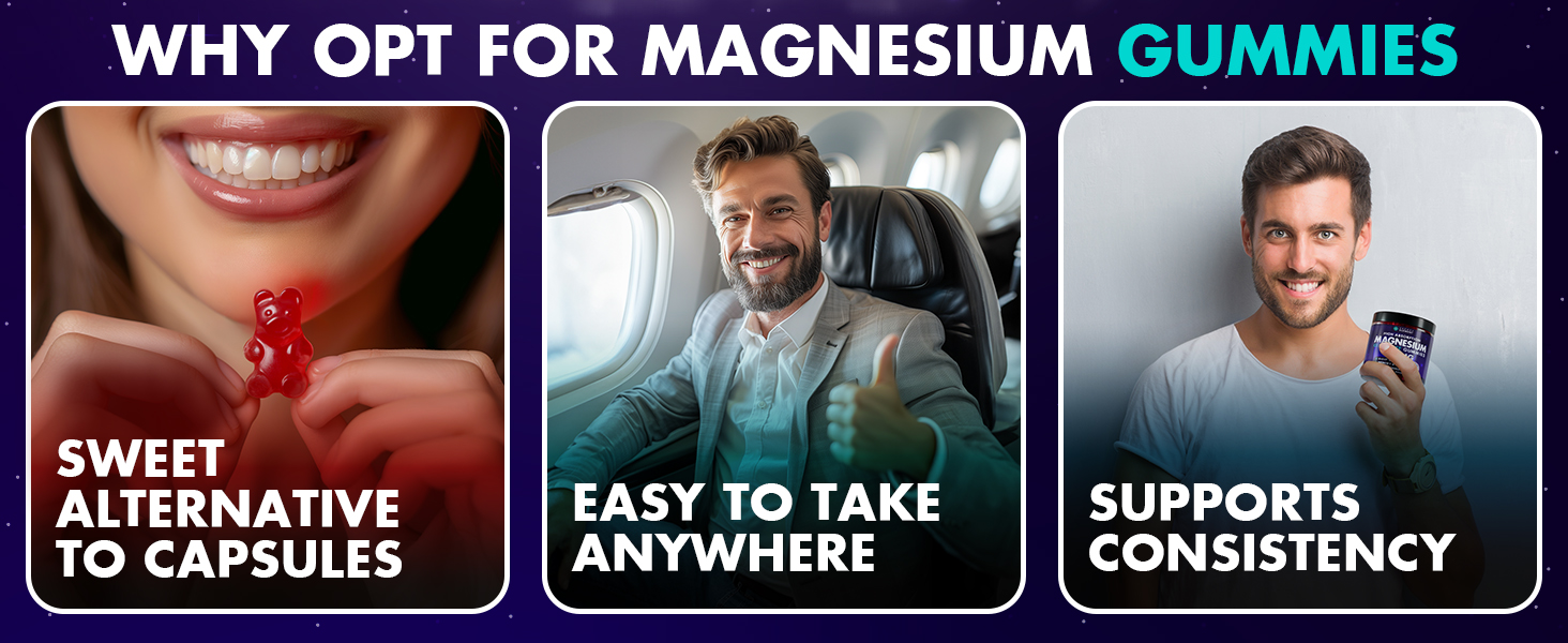 ENJOYABLE DAILY MAGNESIUM SUPPLEMENT: These cherry-flavored magnesium gummies are designed for people who prefer an easy and pleasant way to include magnesium in their daily routine. The soft chewable format eliminates the need for capsules or powders and fits effortlessly into busy lifestyles at home, work, or while traveling.