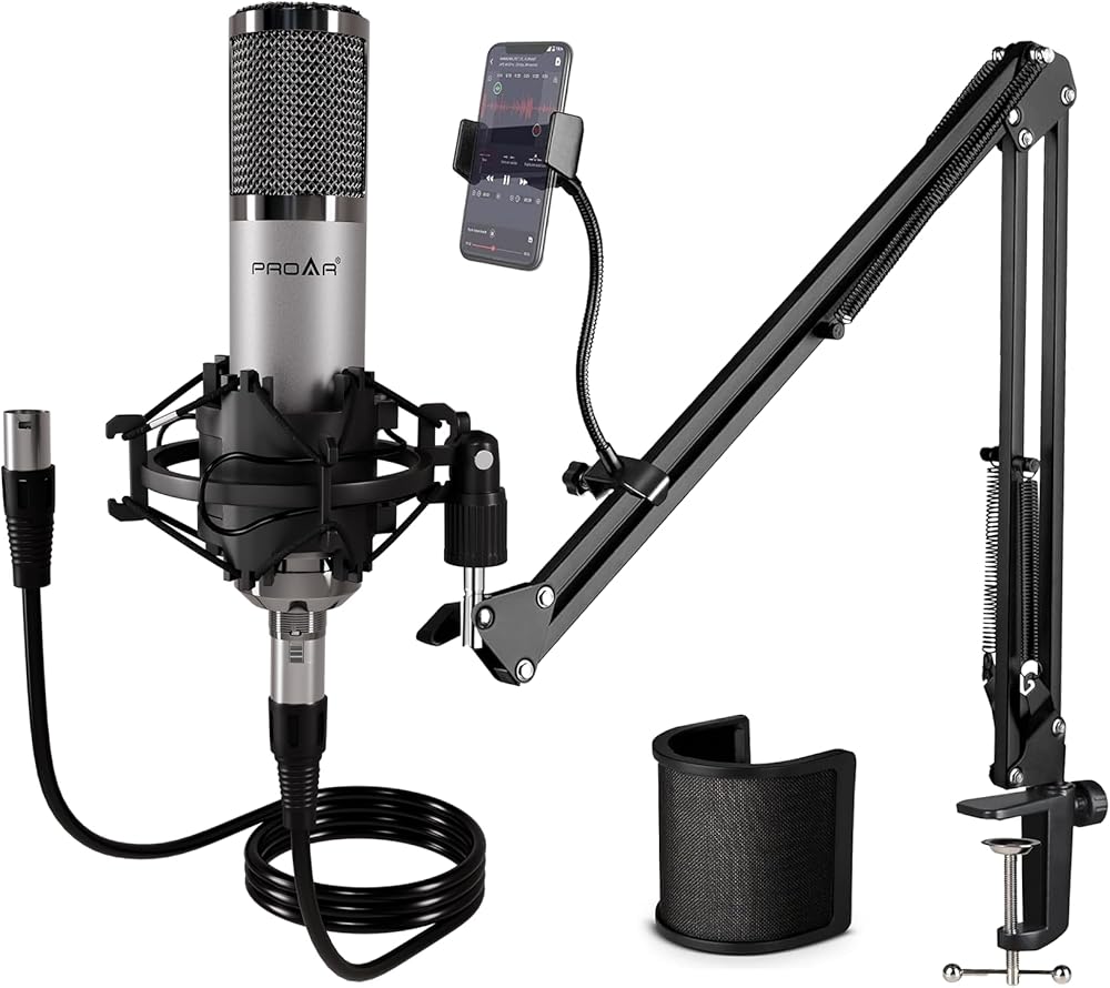 WHAT'S IN THE BOX: Providing exact hardware confirmation, this bundle includes: 1x Microphone for studio, 1x Desktop stand, 1x Shock mount, 1x Pop filter, 1x XLR to XLR cable, and 1x User manual. (Audio interface and 48V power NOT included).
