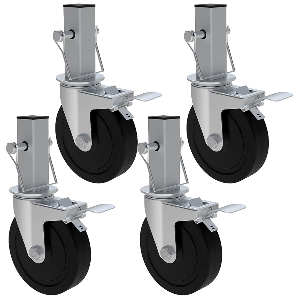 5 Inch Scaffolding Casters, Set of 4 Heavy Duty Baker Scaffold Wheels with Dual Locking Brakes, Rubber Casters Square 1-1/4" Stem Replacement for 6ft Baker Scaffold, 440LBS Capacity per Caster