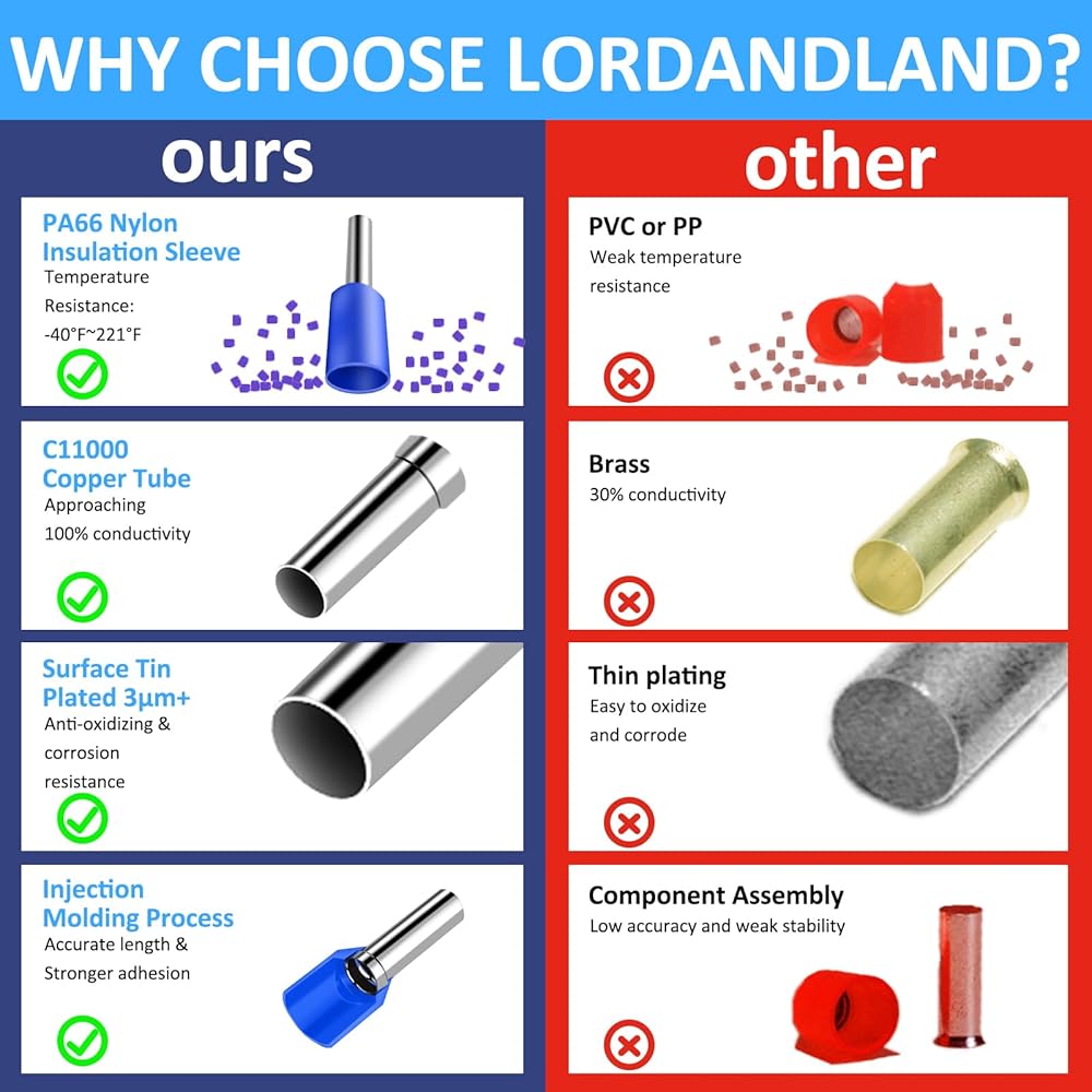 Thick tinned copper material ensures long-lasting performance : Premium tinned copper material ensures good conductivity. Nylon insulating sleeves ensures high corrosion resistance, insulation and flame retardant.