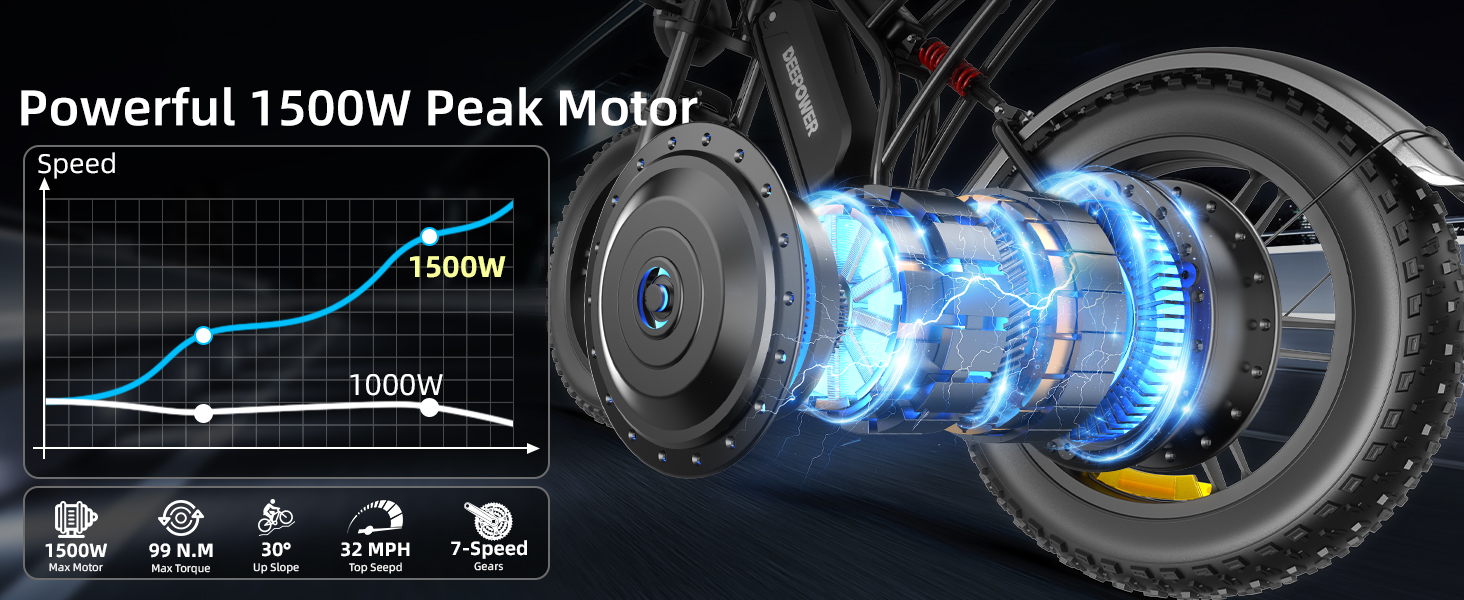 【High-Torque Powertrain for All Conditions】Built with a high-output 1500W peak drive system producing up to 99N·m of torque, the S20 ebike delivers strong acceleration and confident hill climbing on inclines up to 30°. Whether navigating city streets or tackling off-road paths, the power output remains smooth, controlled, and responsive at speeds up to 32+ MPH.