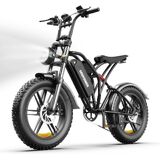 【Comfort-Focused Suspension & Reliable Braking】Designed for stability on mixed terrain, this fat tire electric bike features a front suspension fork paired with a rear hydraulic spring shock, reducing vibration and rider fatigue. Wide 20” x fat tires improve grip on sand, snow, gravel, and pavement, while dual disc brakes deliver consistent stopping control in dry or wet conditions.