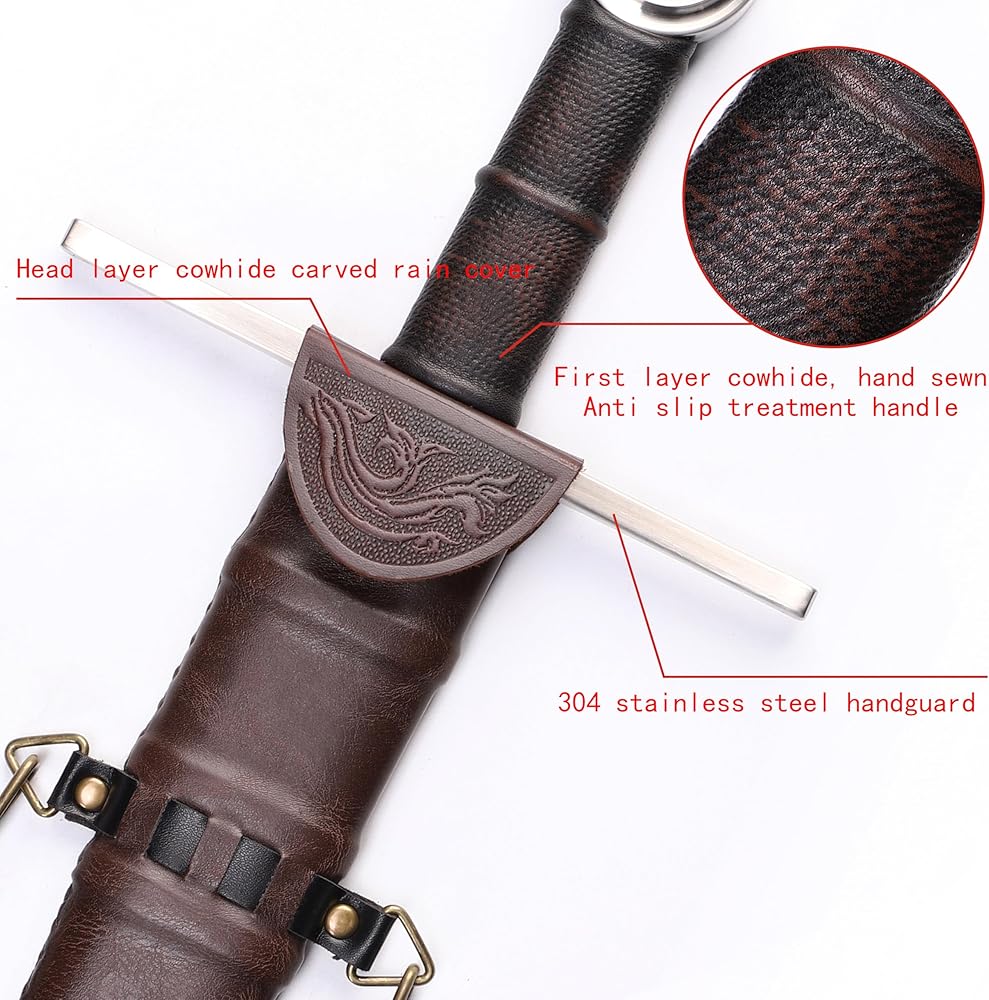 Decorative sword meticulously crafted from 304 stainless steel and full-grain leather, showcasing perfect blend of traditional craftsmanship and modern materials.