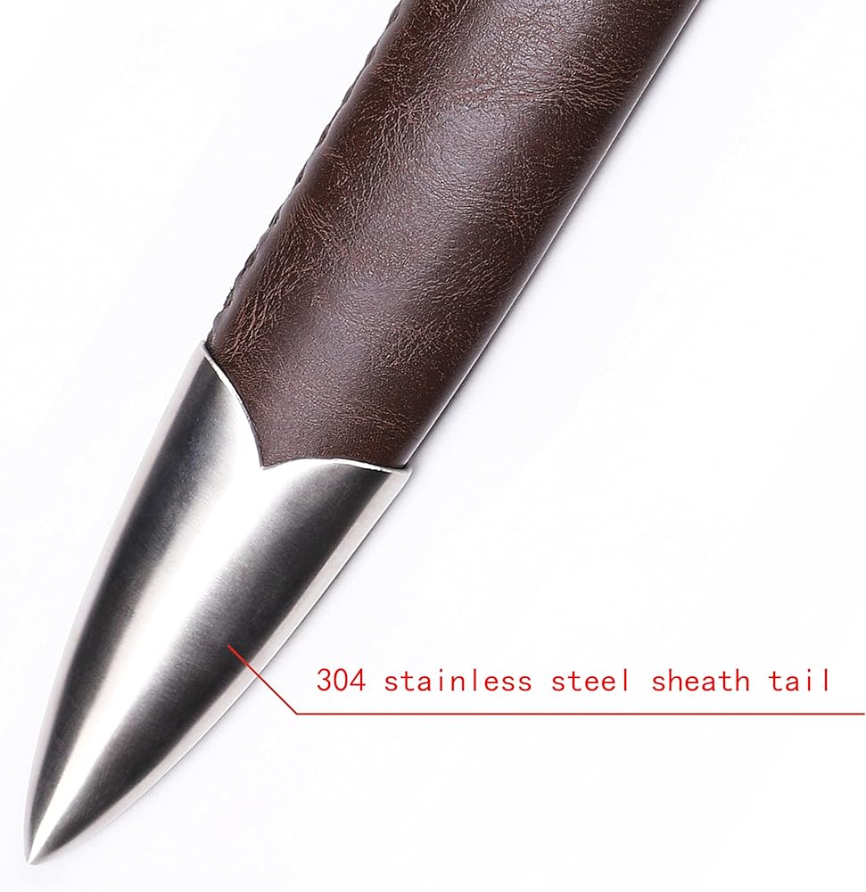 ✔ Premium Material Combination - 304 stainless steel blade with full-grain leather guard, secured by tail rivet