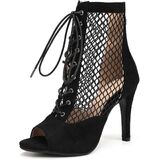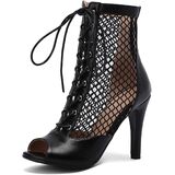 Women's Ankle Dance Boots Peep Toe Mesh Dance Heels Lace Up Back Zipper Ballroom Practice Dance Shoes