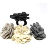 Made by hand by women artisans in Nepal from sustainably sourced, felted wool. Each hand made piece is highly textured and unique with very slight variations in color, pattern and size. 2" ring opening.