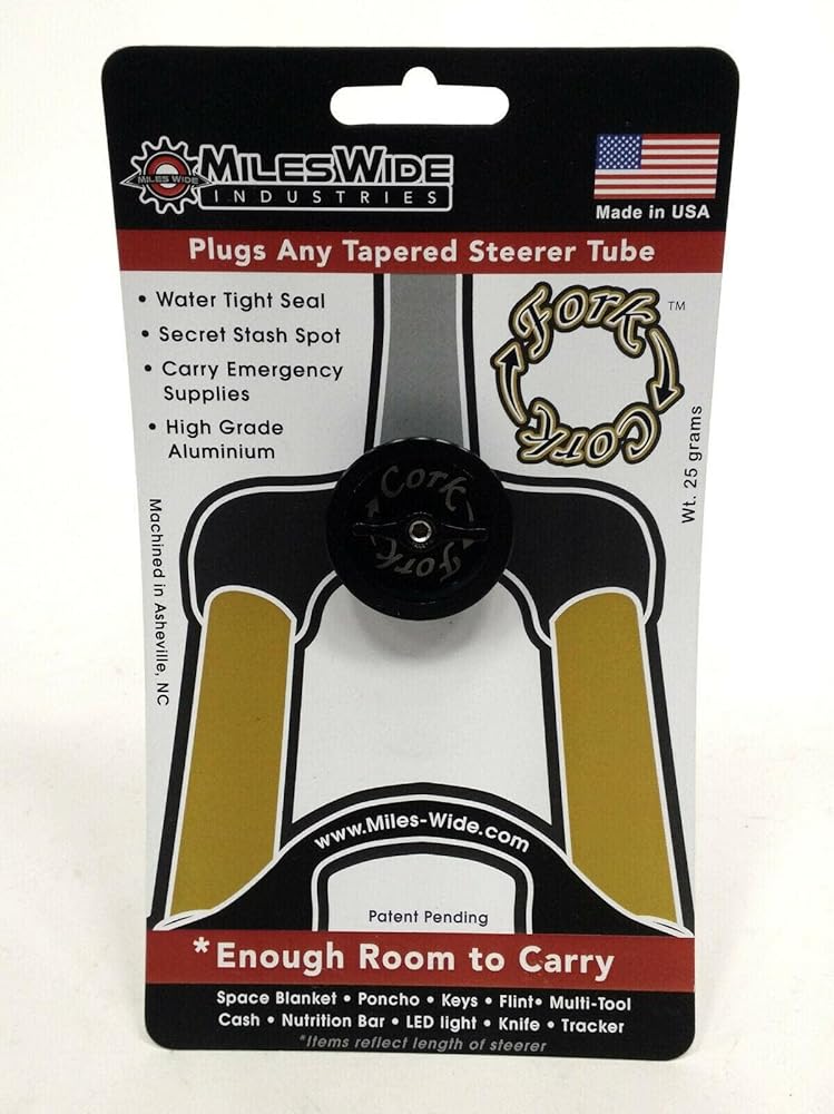 Enhance Your Bicycle's Functionality with the Miles Wide Fork Cork Steerer Plug Optimize your bike's performance and security with the Miles Wide Fork Cork Steerer Plug, a must-have accessory for tapered aluminum steerer tubes. Crafted from durable, cork material, this innovative fork plug not only seals your headset effectively but also turns your bike's head tube into a discreet storage compartment. Materials & Engineering: Made from eco-friendly, resilient cork, this steerer plug is designed to withstand moisture and environmental exposure, ensuring a long-lasting and reliable seal. Its precise tapered fit seamlessly integrates into standard tapered aluminum steerers, providing a watertight seal that helps prevent premature headset bearing wear and keeps your steerer tube clean and free from dirt and debris. Performance & Components: Equipped with a snug-fitting design, the Miles Wide Fork Cork Plug creates an airtight barrier, safeguarding your headset components during rides across diverse terrains. Its innovative sealing technology reduces maintenance needs and prolongs the lifespan of your headset bearings. Style & Use Case: Beyond its functional benefits, this cork steerer plug offers a sleek and minimalist aesthetic, maintaining your bike's clean profile. Ideal for riders seeking added storage solutions without sacrificing style, it transforms the head tube into a secret stash spot-perfect for carrying emergency supplies like a space blanket, poncho, keys, cash, multi-tool, or a theft tracking device. Innovative & Differentiating Features: - Discreet Storage Solution: Turn your head tube into a hidden compartment for essentials. - Complete Seal: Protects against water ingress and dirt, safeguarding high-performance headset bearings. - Compatibility: Designed specifically for tapered aluminum steerers, ensuring a secure fit and reliable performance. Upgrade your bike's functionality with the Miles Wide Fork Cork Steerer Plug-combining durabilit