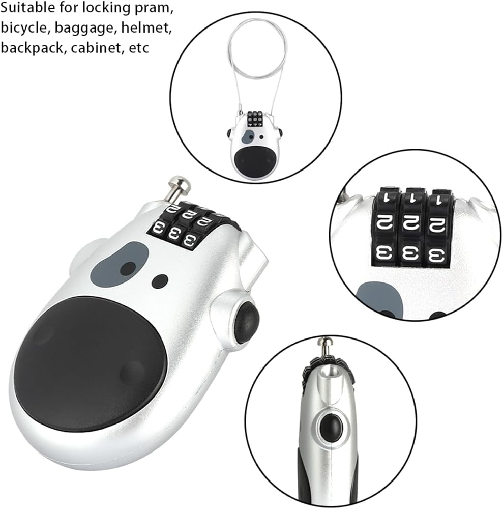 Portable Design: Shaped like charming cow, travel cable lock adds a cute touch. Measuring 3.14x2.2x0.82in and weighing 76g, it's compact enough to fit in pockets or backpacks, making backpack lock a convenient, lightweight safe solution for on the go use