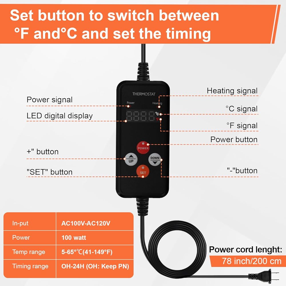 [Set & Forget with 24H Timer]: The built-in 1-24 hours timer offers ultimate convenience and energy savings. Set the desired heating duration and walk away with peace of mind. It automatically shuts off, preventing unnecessary power consumption and giving you perfect honey every time.