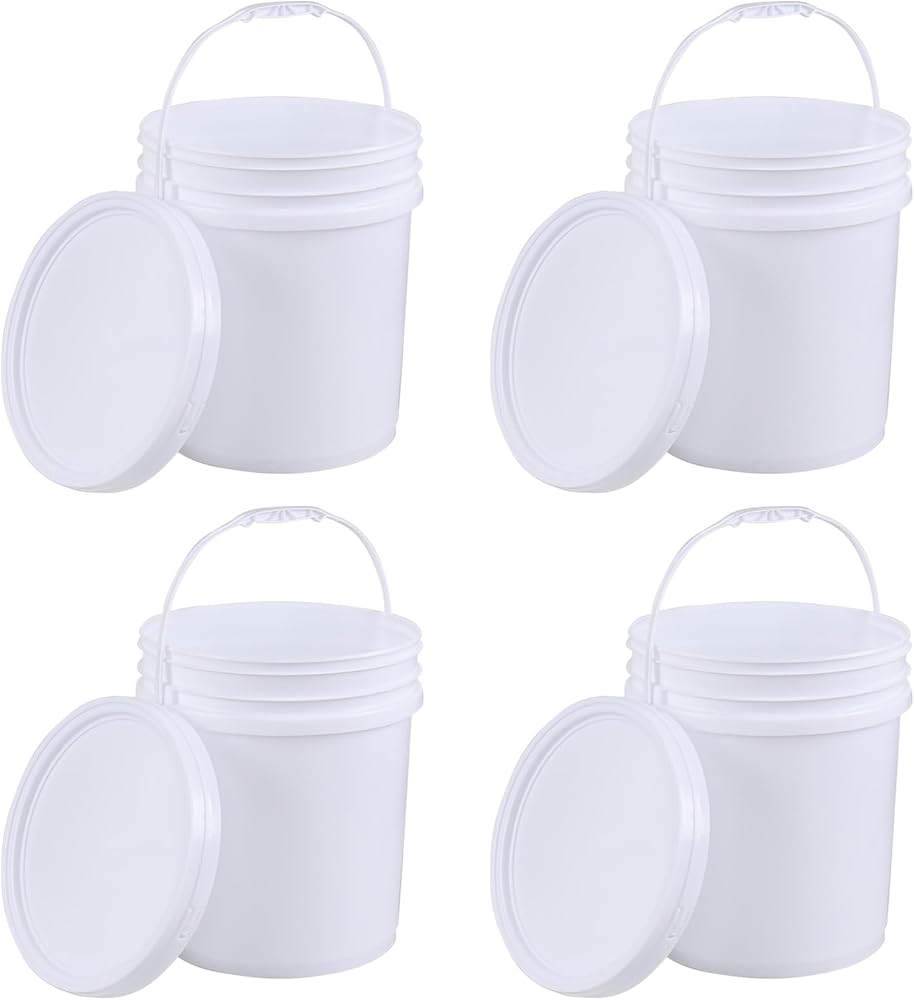 4-Pack 6.6 Gallon Plastic Food Grade Buckets with Handles in White
