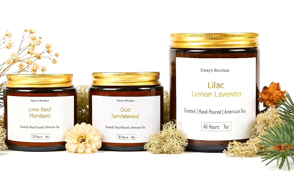 GIFT SET CONTENTS: Includes one 9oz candle and two 4oz candles in elegant amber glass jars, presented in a vintage-style gift box with minimalist design