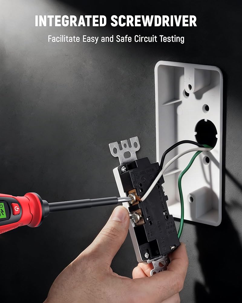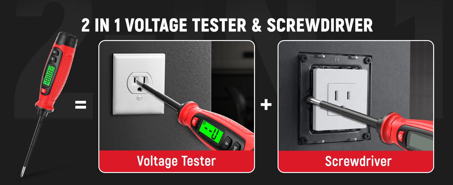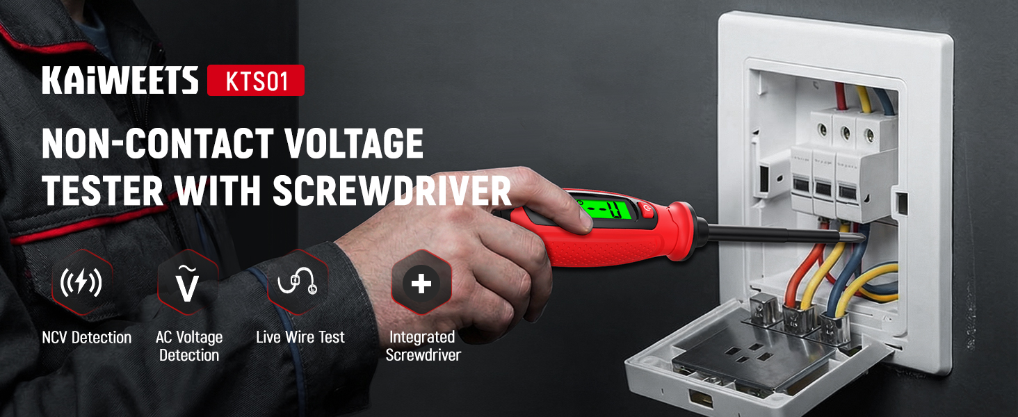 【2-in-1 Voltage Tester & Phillips Screwdriver】KAIWEETS multifunctional tool combines a voltage tester pen with a phillips screwdriver featuring a magnetic tip, allowing you to check electrical circuits and tighten or loosen screws with ease using one compact device. Ideal for electricians, homeowners, and DIY users handling outlet installation, switch replacement, and basic electrical repairs.