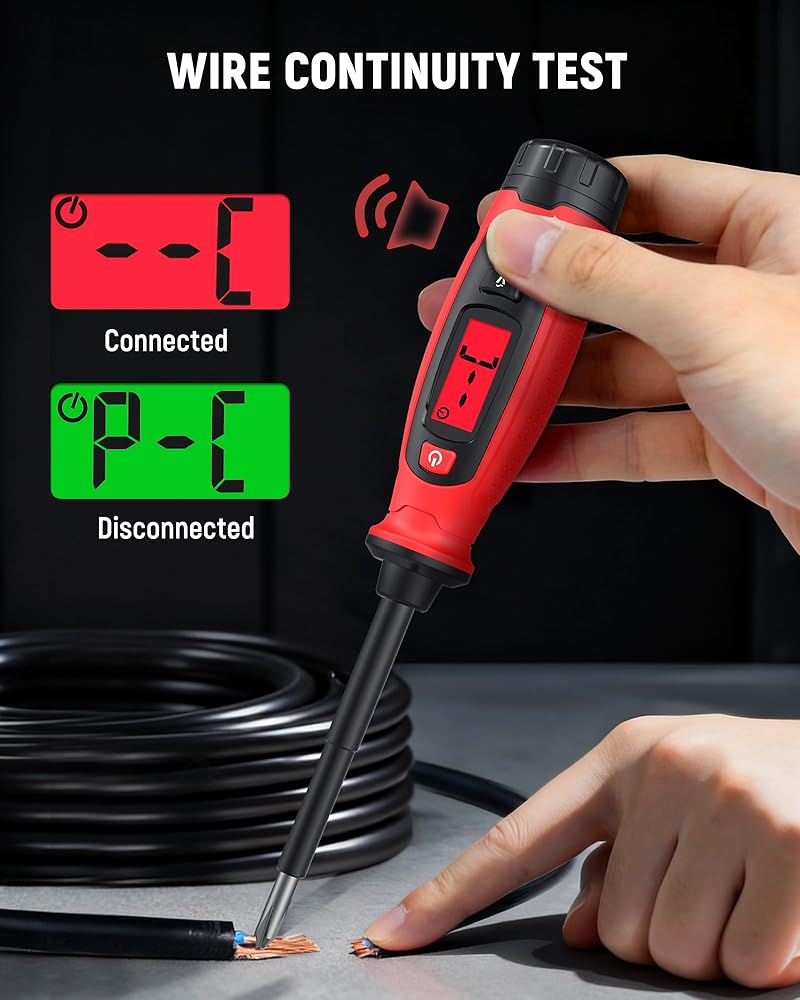 【Clear Readings And Circuit Verification 】The LCD display shows real-time voltage levels and signal strength for accurate interpretation of test results. Combined with continuity testing, this electrical testing tool helps verify wires, switches, and fuses before replacement, improving diagnostic accuracy and supporting efficient circuit troubleshooting and electrical maintenance tasks.