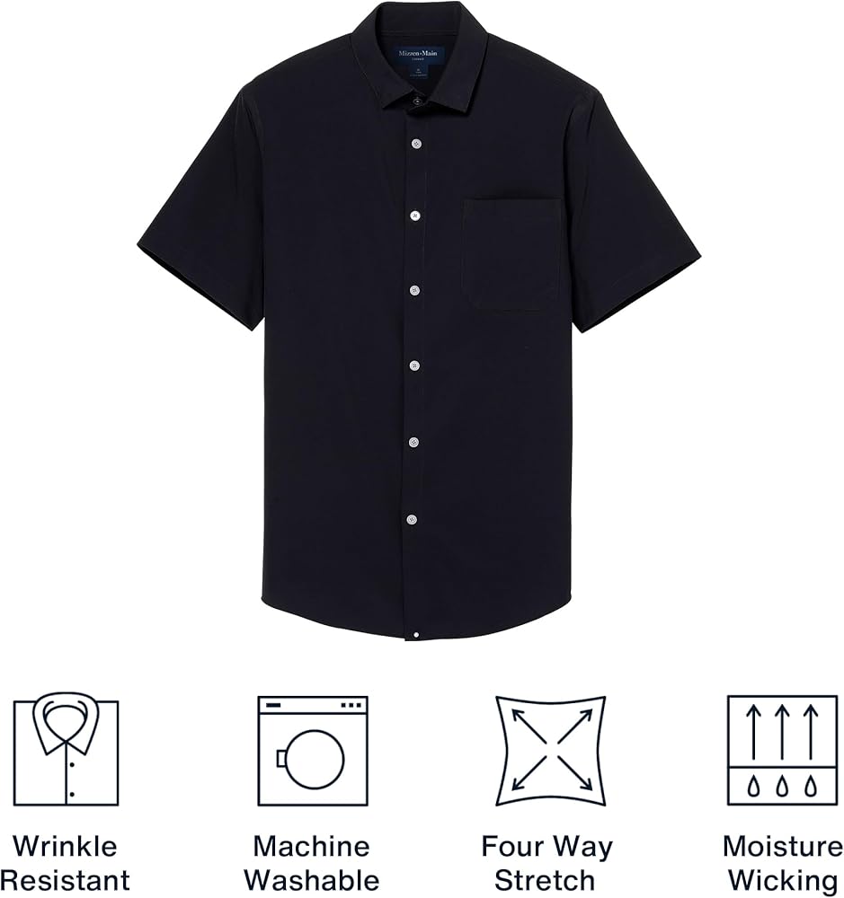 Mizzen+Main Leeward Wrinkle-Resistant Short-Sleeve Button-Up Performance Men's Dress Shirt with 4-Way Stretch, Trim Fit