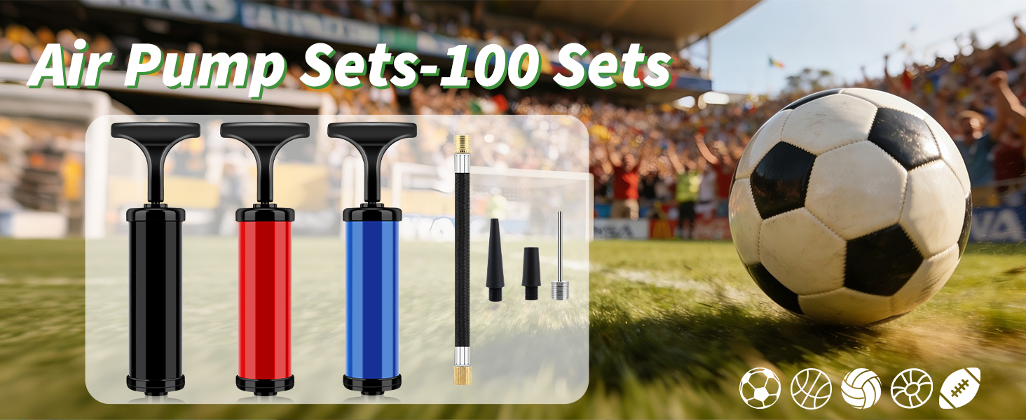 100 Sets Ball Pump Bulk Air Pump for Sports Balls Include Needle Nozzle Extension Hose Portable Hand Inflation Kit for Basketball Soccer Football Balloon