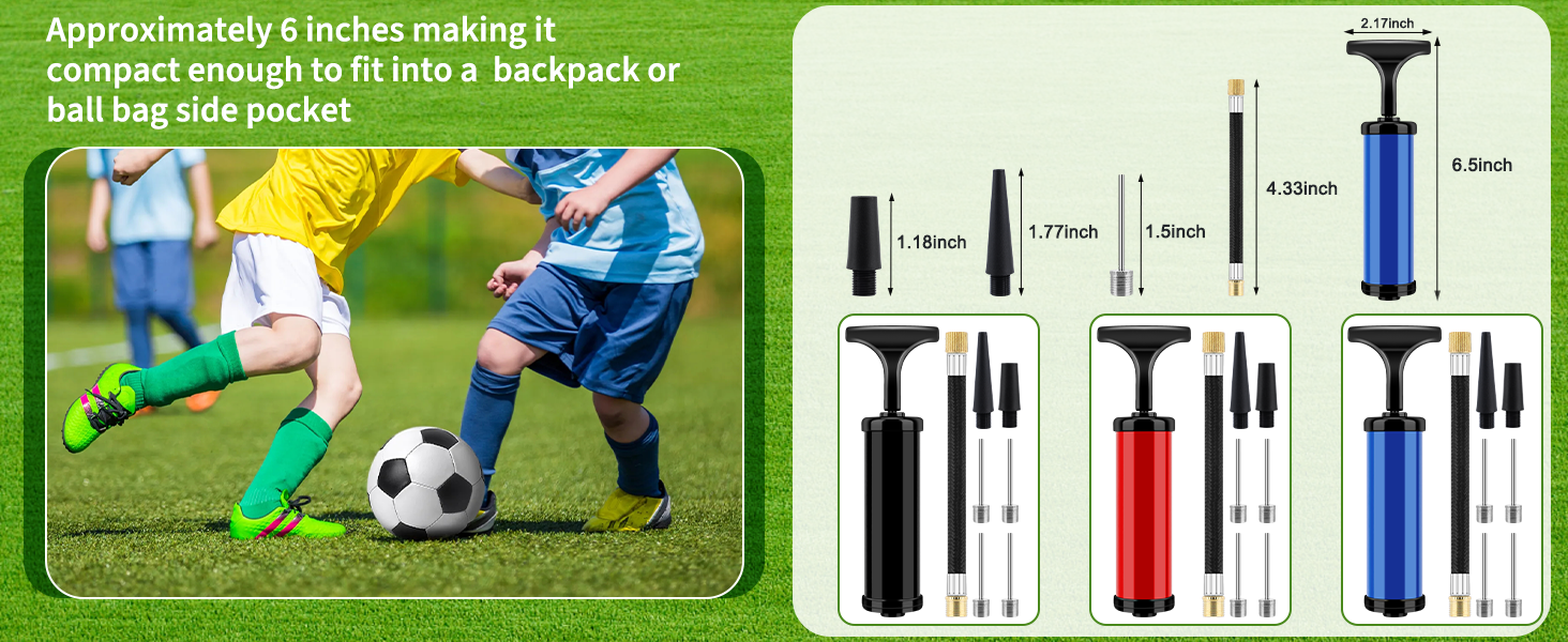 EASY TO CARRY DESIGN: Compact size and lightweight structure ensure this ball pump for sports balls can be conveniently carried in backpacks, sports bags, camping kits or emergency kits for on-the-go inflation anytime, anywhere.