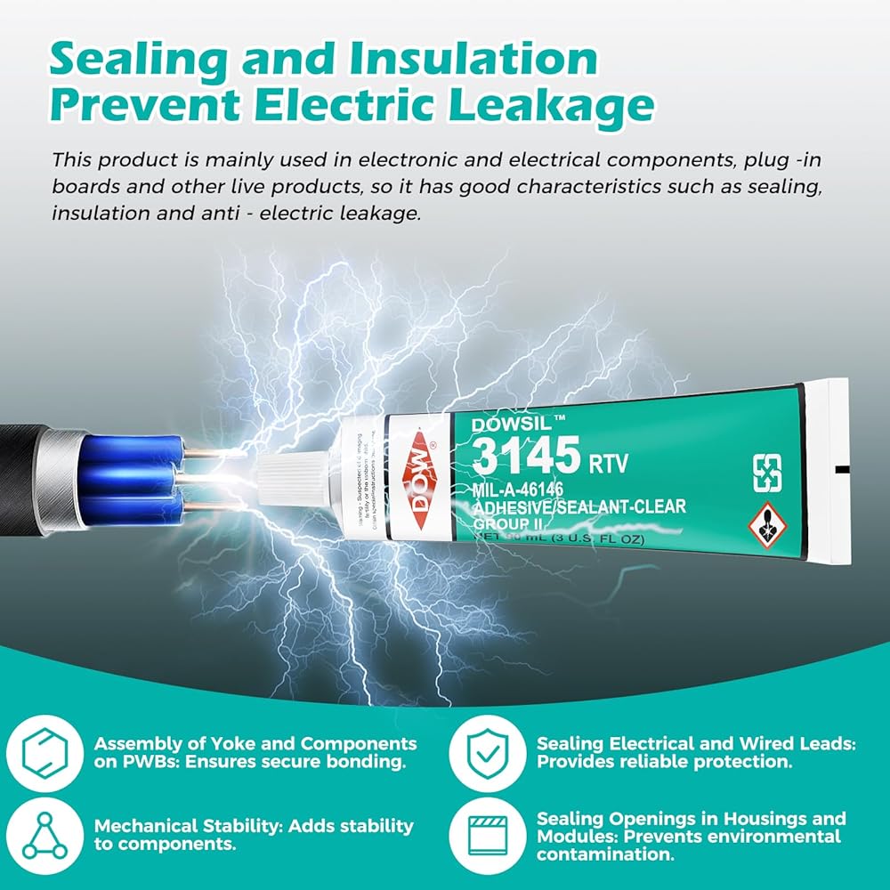 3145 RTV 90ml 3oz High Temperature Waterproof Sealed Electronic Fixed Clear Adhesive Mil-A-46146 Electrical Battery Board Housing Moisture Sealing Non Flow