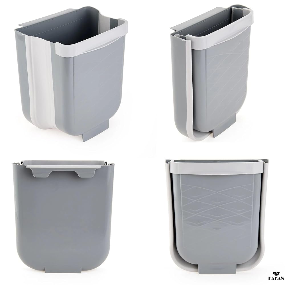 Hakan Hanging Foldable Trash Can for Kitchen Cabinet Door | Collapsible Narrow Waste Bin | Compact Travel Trash Can | Space Saving 6 L Plastic Garbage Bin Under Sink | 1.5 Gallon Waste Basket, Gray
