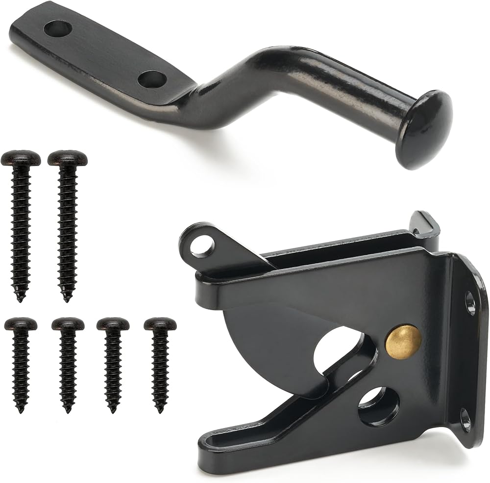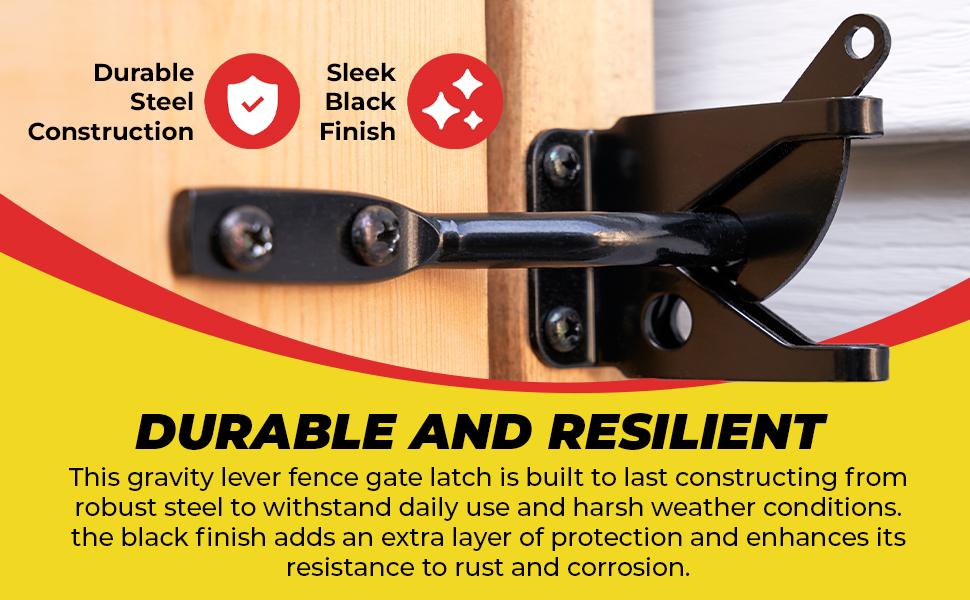 KEYLESS CONVENIENCE: The 4 1/8 inch lever has an automatic pull lock and is compatible with all types of outdoor side gates, large and small, including wrought iron, vinyl, and PVC. The fancy black coated steel is sure to match any back yard decor.