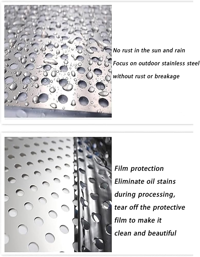 Transform your outdoor space with our Stainless Steel Perforated Sheet, the perfect solution for enhancing your garden, balcony, or patio. This versatile metal decorative grate screen is designed to provide both functionality and style, making it an ideal choice for various applications including protective fencing, decorative accents, and even DIY projects.**Key Benefits**1. **Enhances Growth Environment**: This perforated sheet is perfect for gardening enthusiasts. It allows for optimal air circulation and light penetration, creating a nurturing environment for plants and flowers while also providing a safe space for pets.2. **Lightweight yet Durable**: Crafted from high-quality 304 stainless steel, our perforated sheet is lightweight, making it easy to handle and install. It offers durability and resistance to rust, ensuring long-lasting performance in any outdoor setting.3. **Versatile Applications**: Beyond gardening, this perforated metal sheet can be used for creating screens, filters, decorative baskets, trash cans, and even patio furniture. Its decorative design adds an elegant touch to any space while serving practical purposes.4. **Easy to Maintain**: Each sheet is shipped with a protective film to prevent scratches during transport. Once removed, you'll find a clean and aesthetically pleasing surface that requires minimal upkeep.**Specifications**- **Product Name**: Stainless Steel Perforated Sheet- **Material**: 304 Stainless Steel- **Color**: Silver- **Hole Diameter**: 10MM- **Hole Distance**: 10MM- **Thickness**: 0.3mm (0.01 inch)- **Functions**: Protection, Safety, Anti-fall, Leakproof, Anti-theft, Decoration- **Ideal For**: Balconies, Railings, Stairs, Gardens, Windows, Courtyards, Yards, Patios**Package Includes**1 x Perforated Roll Plate (full volume)**Important Notes**: - This listing is for the stainless steel mesh only; all othe...