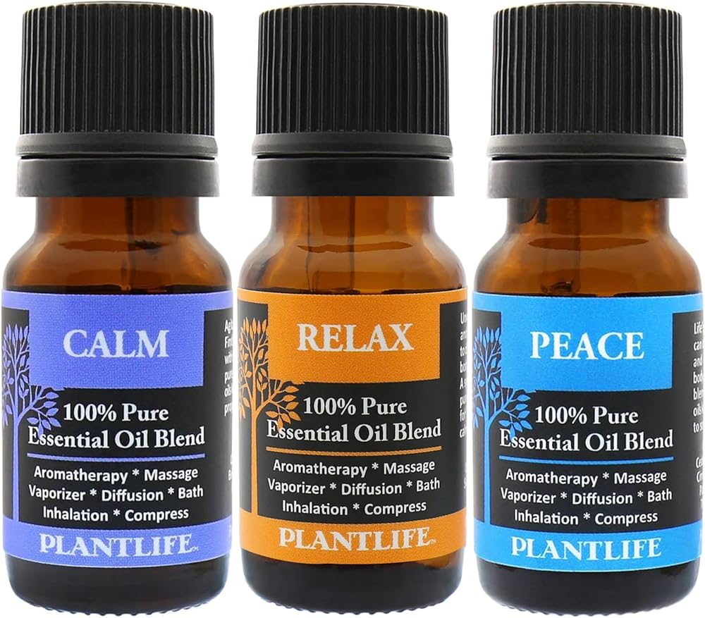 Plantlife Stress Set 3-Pack (Calm, Relax, and Peace) Aromatherapy Essential Oil Set - Straight from The Plant 100% Pure Therapeutic Grade - No Additives or Fillers - Made in California 10 ml