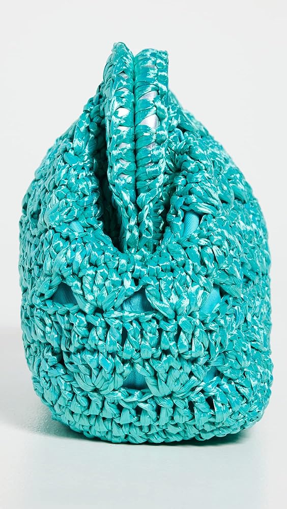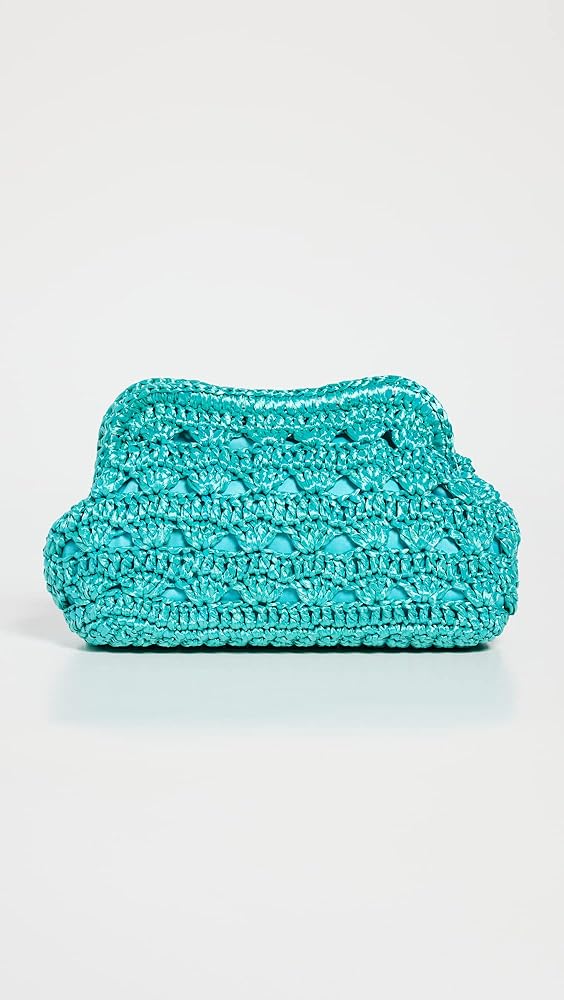 Charming and colorful crocheted raffia composes this petite clutch from the specialists in summery accessories at Caterina Bertini.